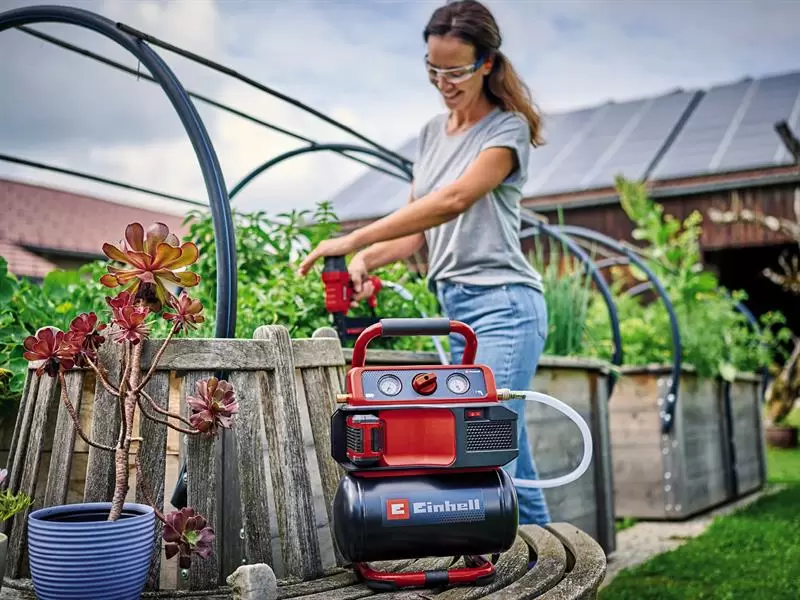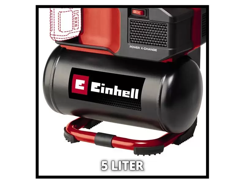 The Einhell TE-AC 18/75 Li Power X-Change Air Compressor is powerful yet portable. The pump is oil-free and service-free, which keeps the maintenance effort as low as possible. or convenient maintenance, a drainage valve is provided to empty any condensed water.