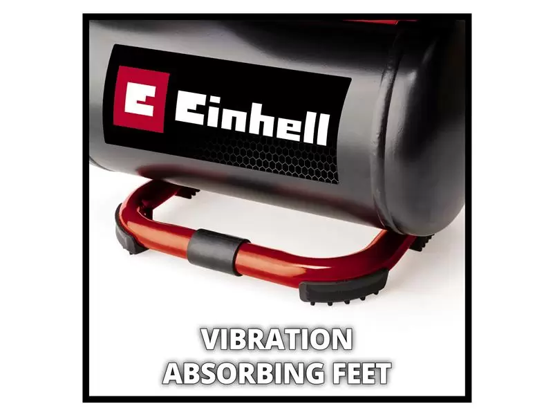 The integrated carrying handle makes it quick and easy to transport. Fitted with rubberised and vibration-damped feet, the 9.5kg compressor is stable and generates hardly any noise while running.