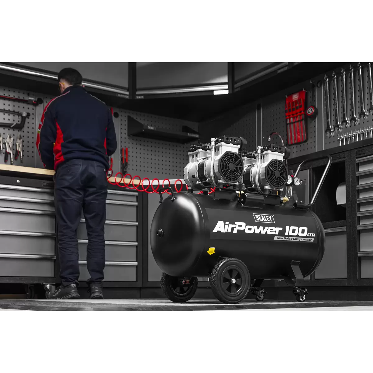 Home > Workshop Equipment > Air Compressors > Sealey - SAC10001S - 100L Oil Free Low Noise Direct Drive Air Compressor 2 x 2hp