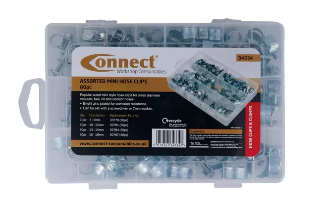 Home > Hardware / Consumables > Assorted boxes > Connect - 34334 - Assorted Mini Hose Clips - 80pc