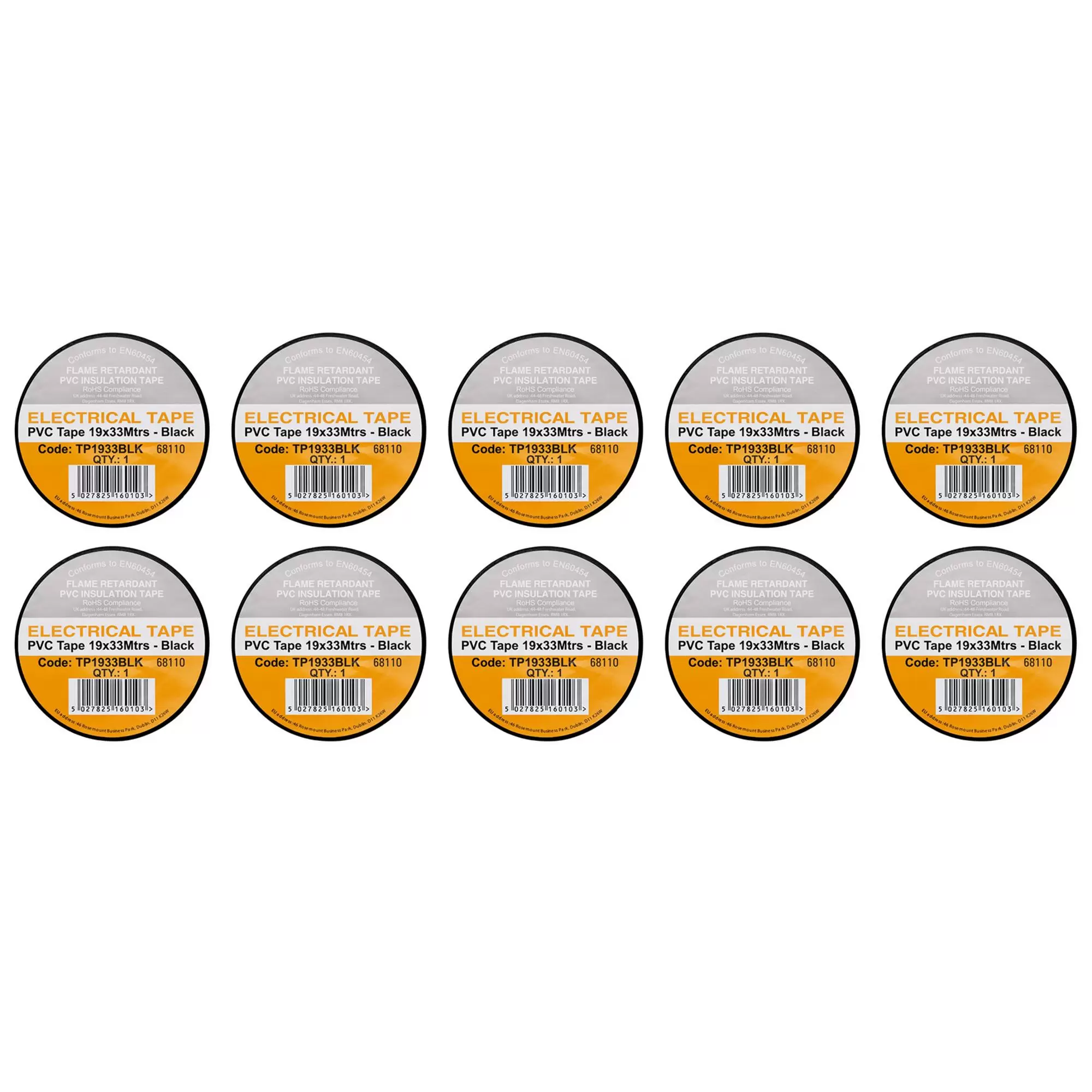 Draper Tools - 29496 - Black PVC Electrical Insulation Tape, 19mm x 33m (Pack of 10)