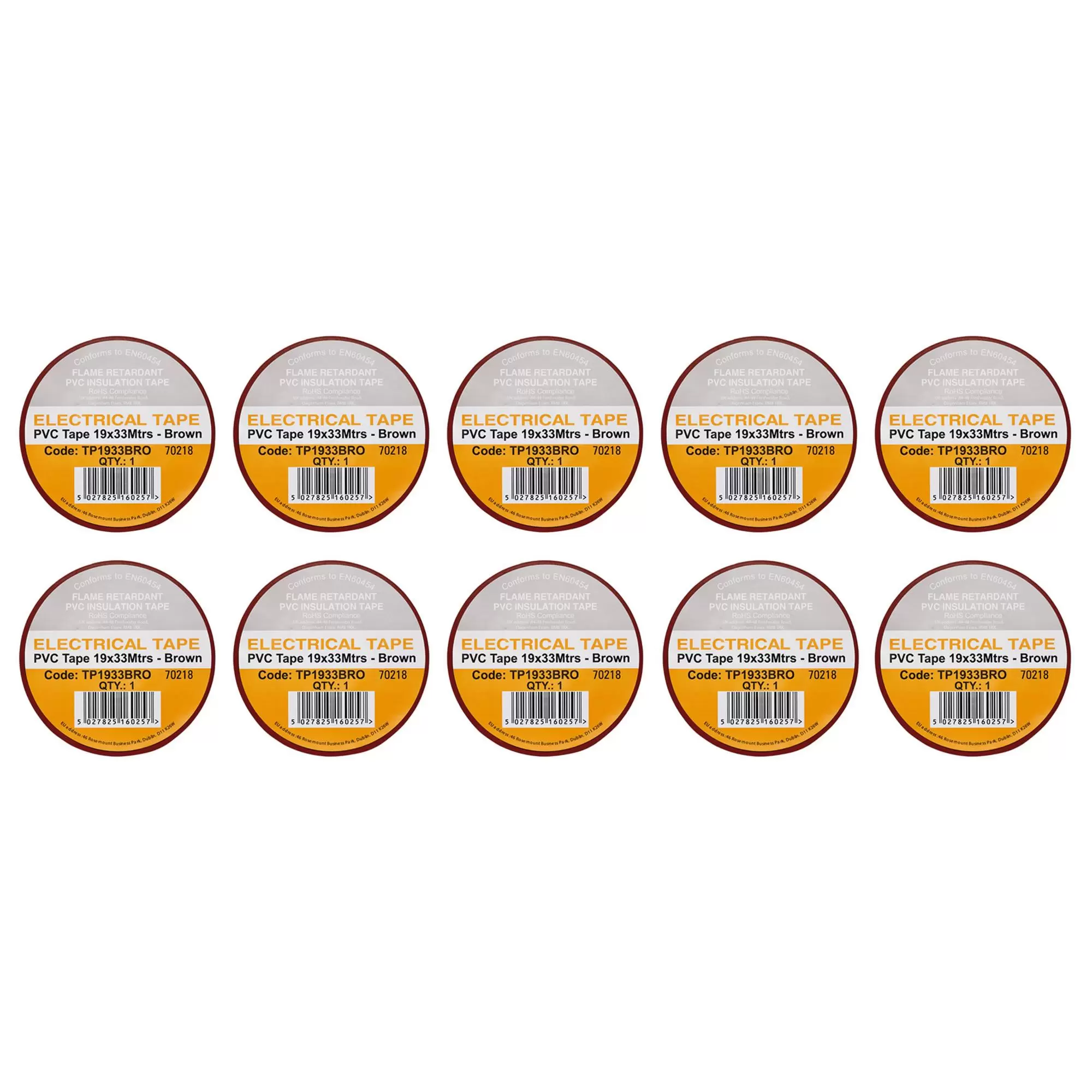 Draper Tools - 29498 - Brown PVC Electrical Insulation Tape, 19mm x 33m (Pack of 10)