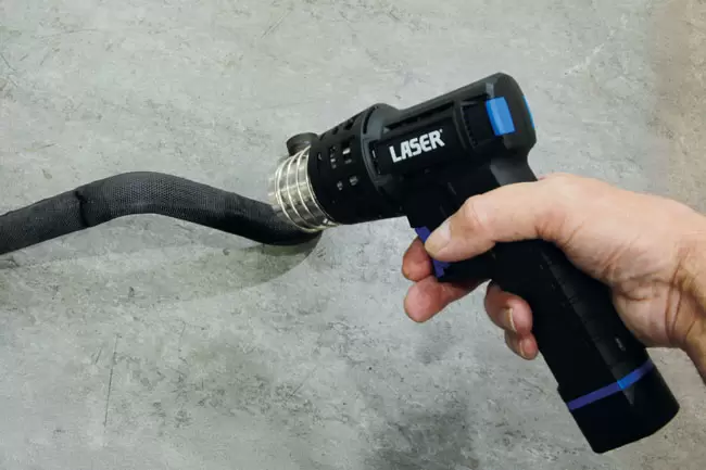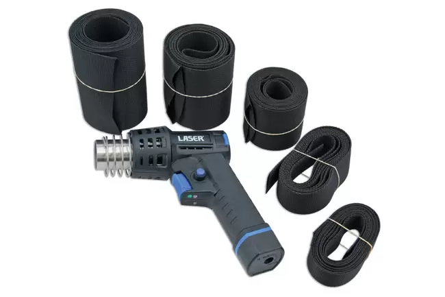 - Also features a Butane powered hot air gun, Laser Part No. 8815, all supplied in a plastic storage case with carrying handle.