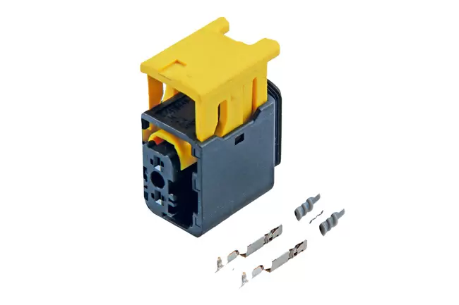 - Contains: 1x 2-pin connector housing, 2x 1.5 terminals & 2x weather seals (grey).