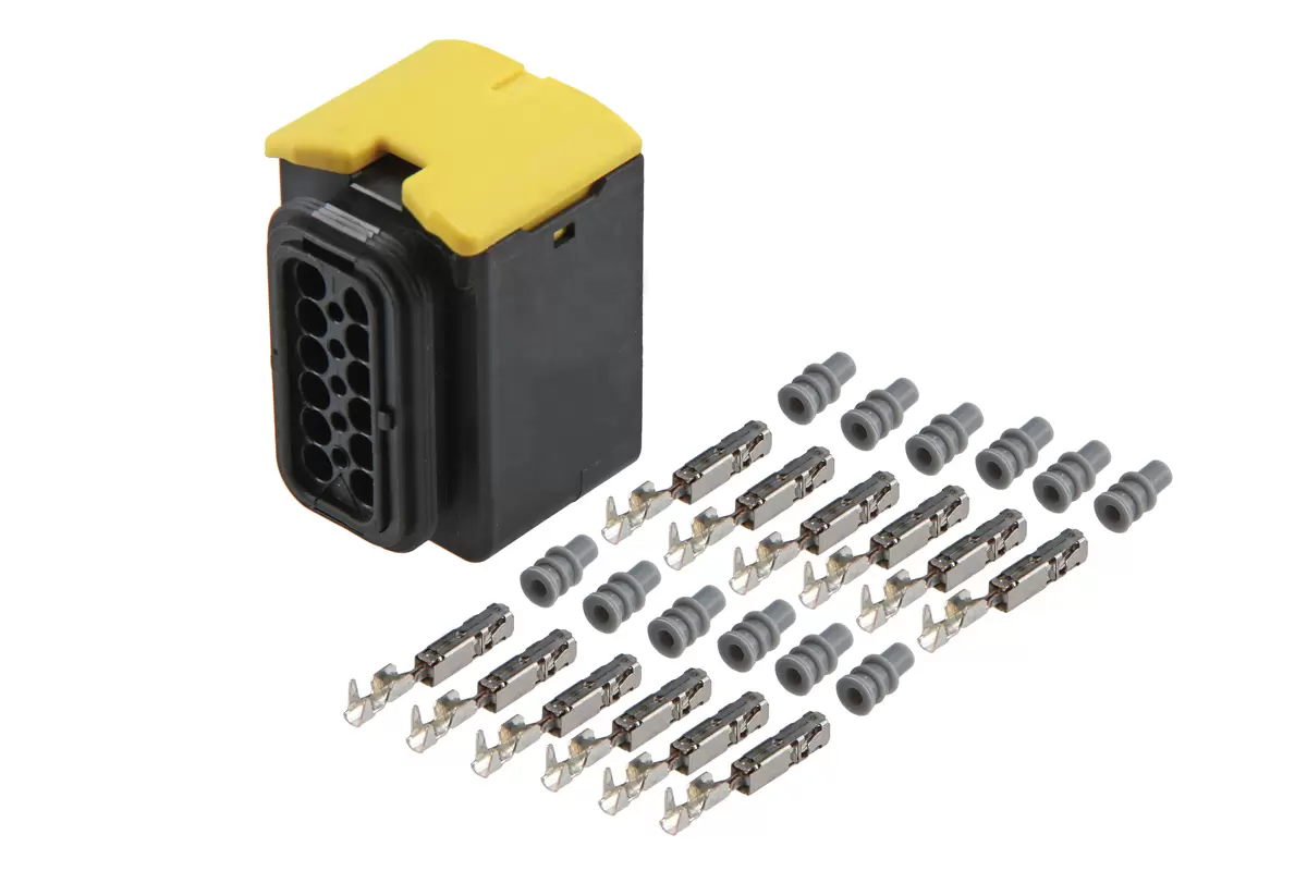 - Contains: 1x 12-pin connector housing, 12x 1.5 terminals & 12x weather seals (grey).