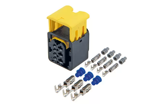 - Contains: 1x 7-pin connector housing, 4x 1.5 terminals, 4x weather seals (grey), 3x 2.8 terminals & 3x weather seals (blue).