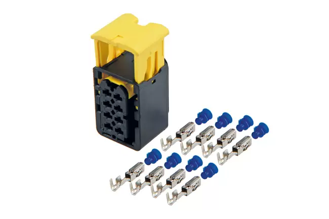 - Contains: 1x 8-pin connector housing, 8x 2.8 terminals & 8x weather seals (blue).