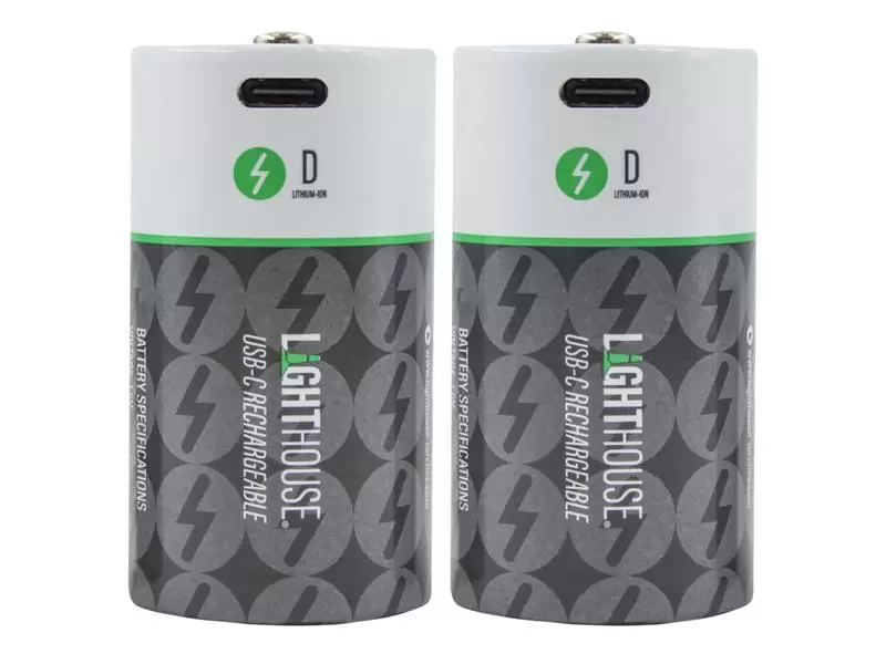 Pack of 2 Lighthouse D USB-C Rechargeable Batteries Li-ion
