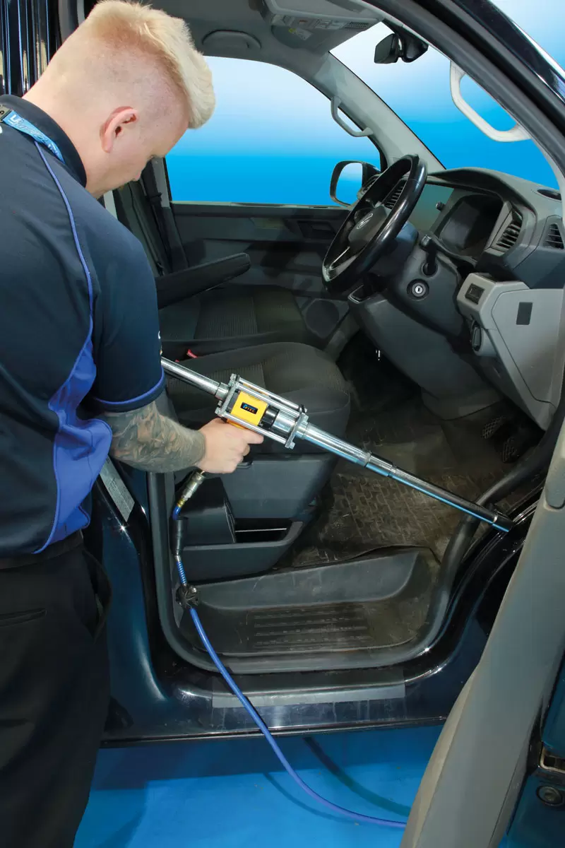 - One-person operation. Connects to standard workshop air lines.