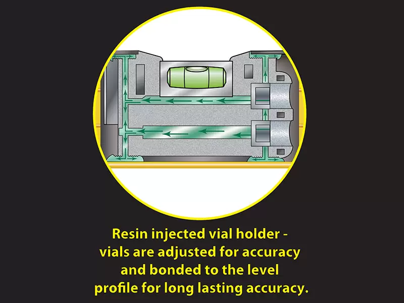 2 vials - 1 plumb, 1 horizontal.
