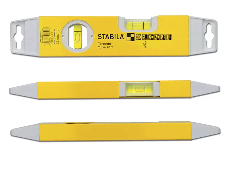 Stabila Torpedo Level, is a sturdy level with two shockproof vials (one horizontal and one vertical).