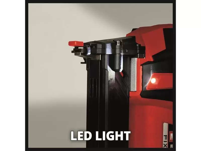 The slim design with rubberised side surfaces and ergonomic softgrip ensure comfortable handling. Integrated LED lighting on both sides of the housing ensures optimum illumination of the working area. The safety nose prevents accidental triggering of the stapler and thus protects against injury.