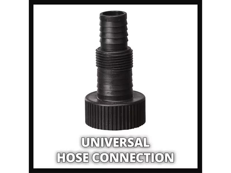 The pump has two power levels: ECO mode ensures longer running times with less battery consumption, whereas BOOST mode provides the maximum output. To start the pump, the water level must be at least 40mm; the powerful pump can pump down to a residual water level of 35mm. A double-sided carrying handle makes it easy to transport. The pump is equipped with a 42mm (1 1/4in AG) pressure connection and is supplied with a universal adaptor for 25/32mm hoses with 1in AG (33.3mm).