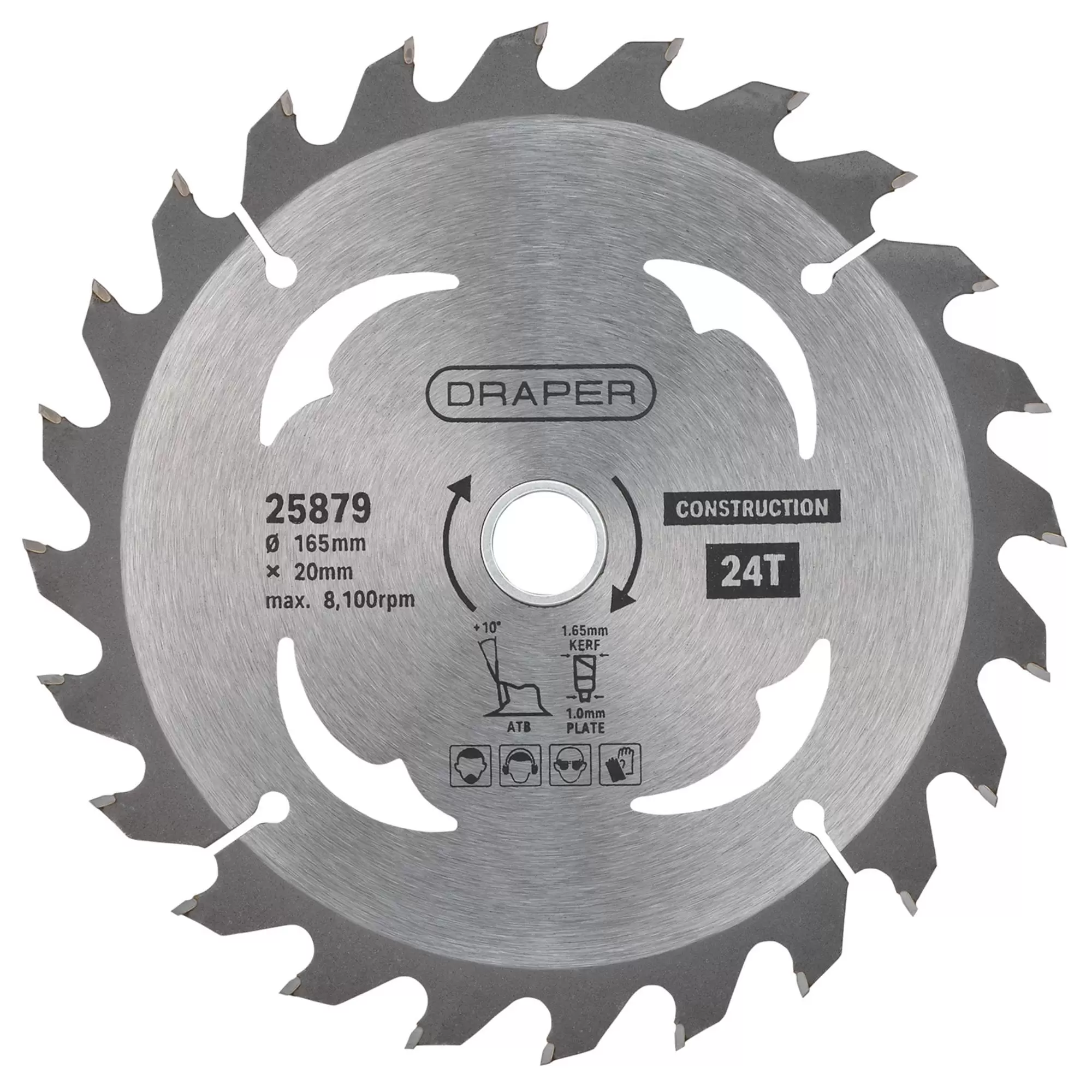 Draper Tools - 25879 - TCT Cordless Construction Circular Saw Blade for Wood & Composites, 165 x 20mm, 24T