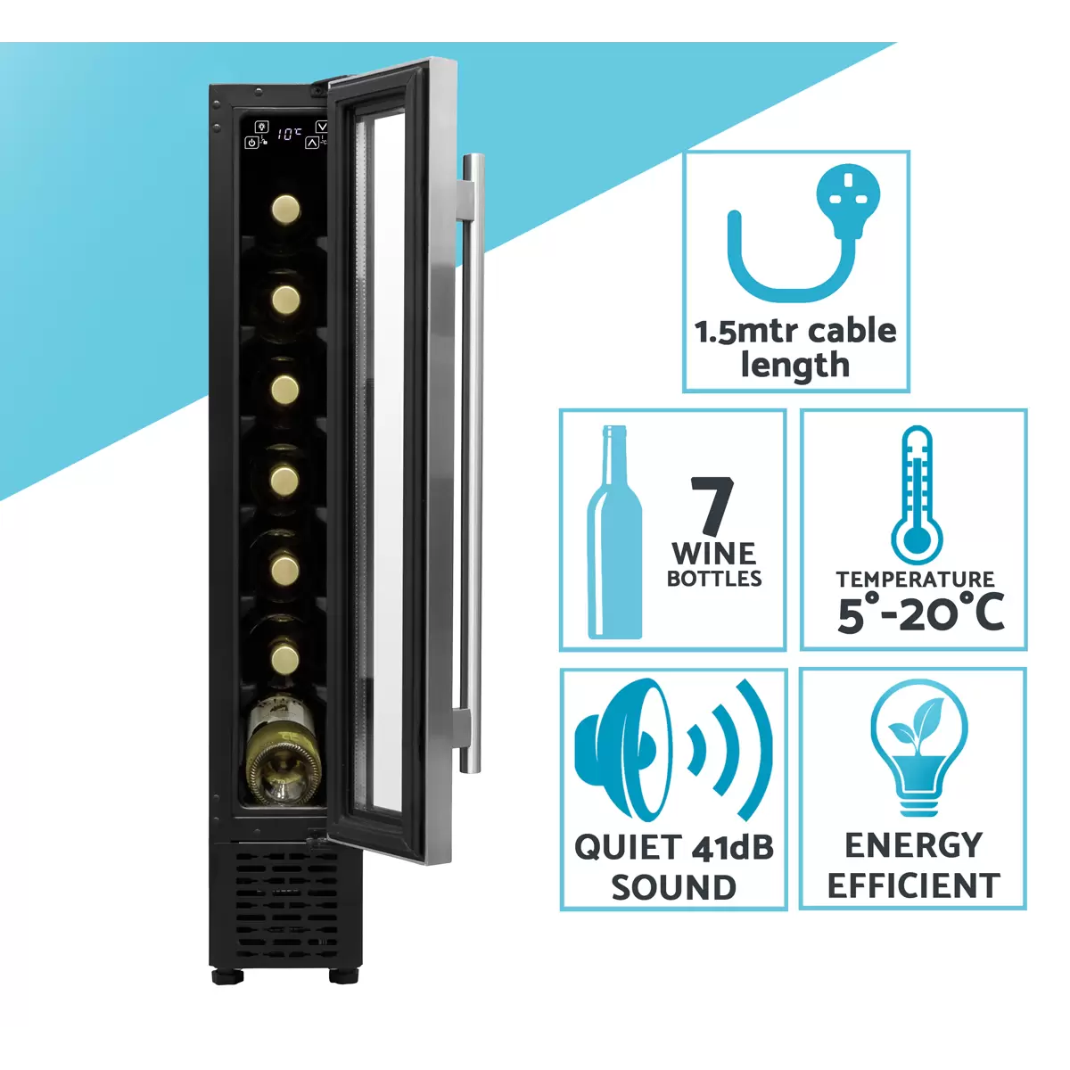 Baridi - DH77 - Baridi Extra-Slim 7 Bottle Wine Fridge & Cooler 15cm - Stainless Steel