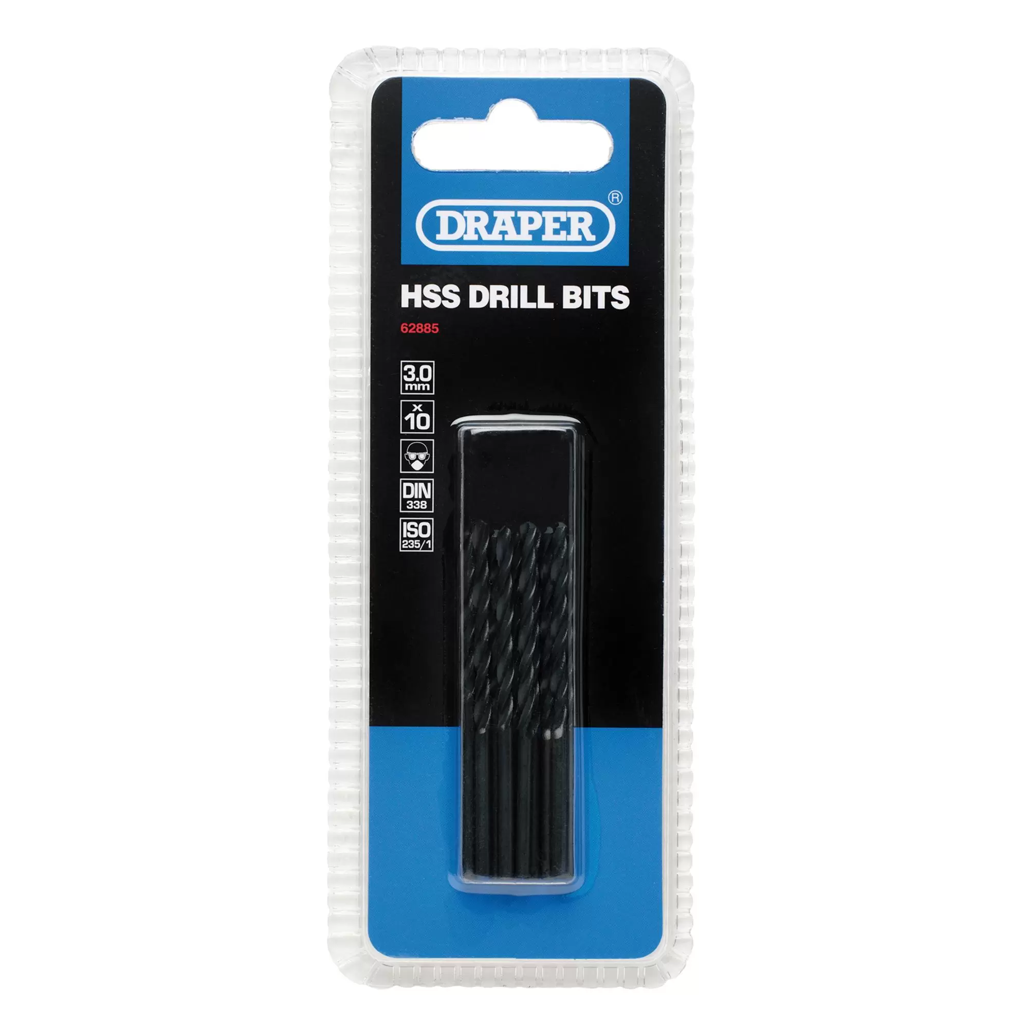 Draper Tools - 62885 - HSS Twist Drill Bits, 3.0 x 60mm (Pack of 10)
