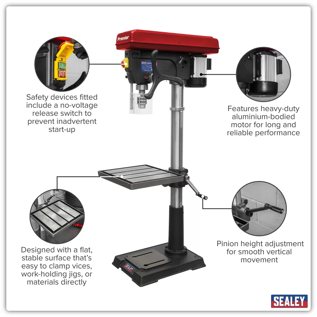 Sealey - PDM260F - Premier Floor Standing Pillar Drill 12-Speed 1100W/230V