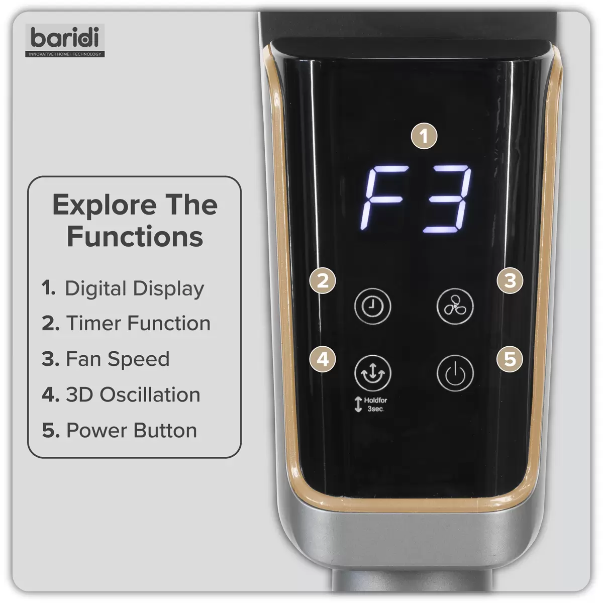 Home > Hardware / Consumables > Environmental & Janitorial > Baridi - DH141 - Baridi Pedestal Fan with Remote Control & 12hr Timer 12" - Grey