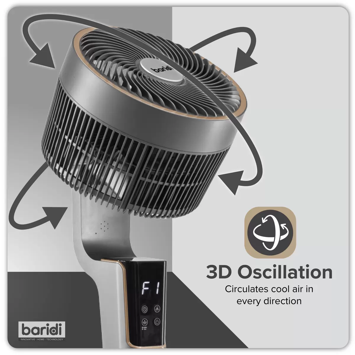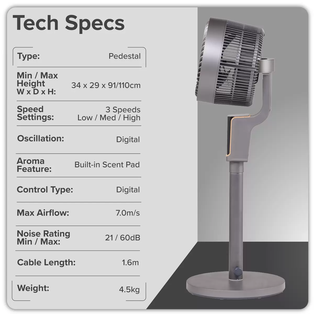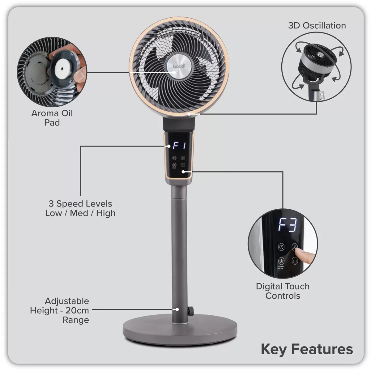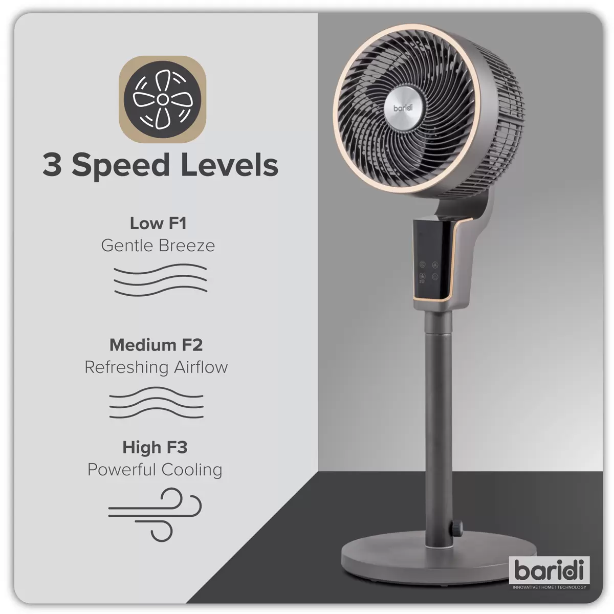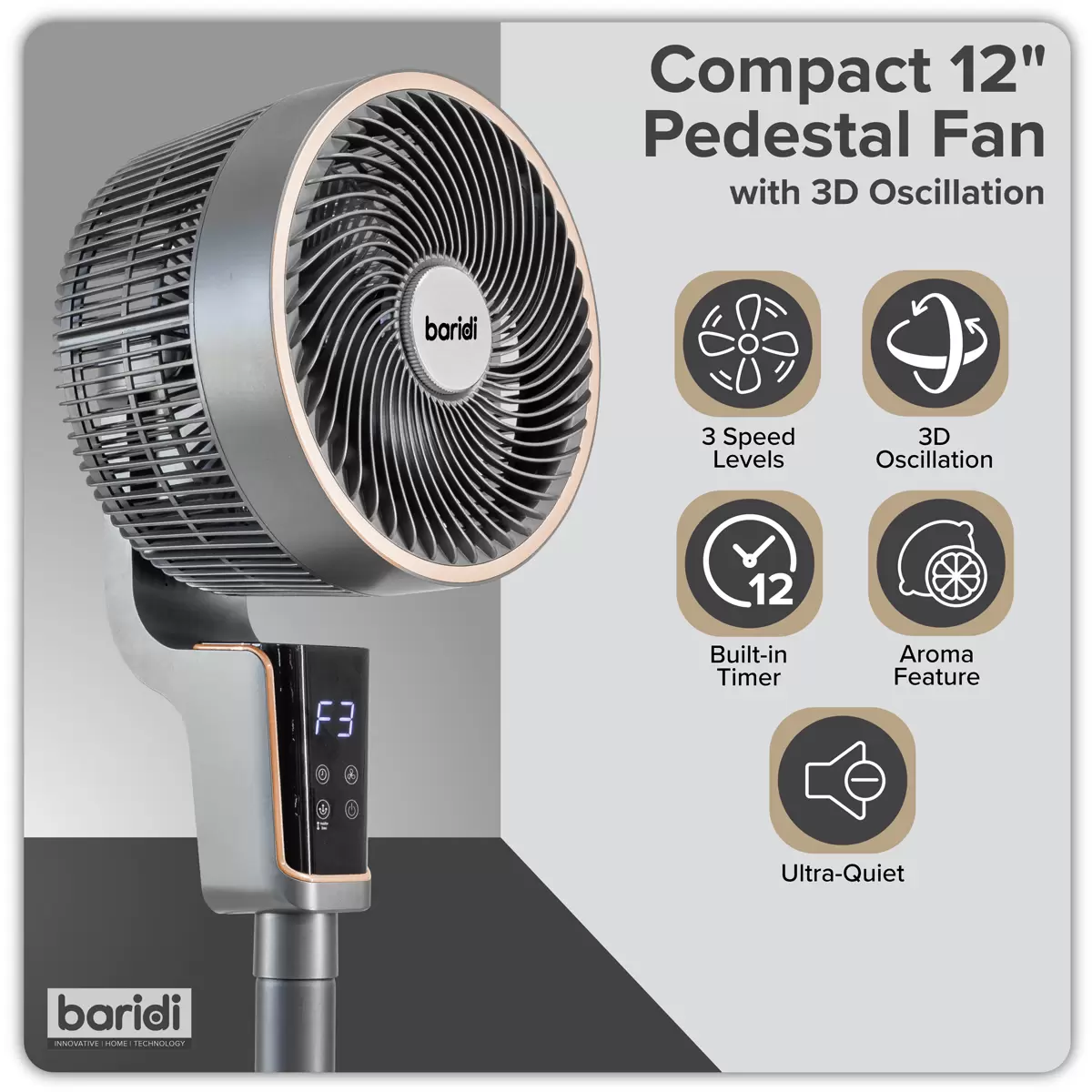Baridi - DH141 - Baridi Pedestal Fan with Remote Control & 12hr Timer 12" - Grey