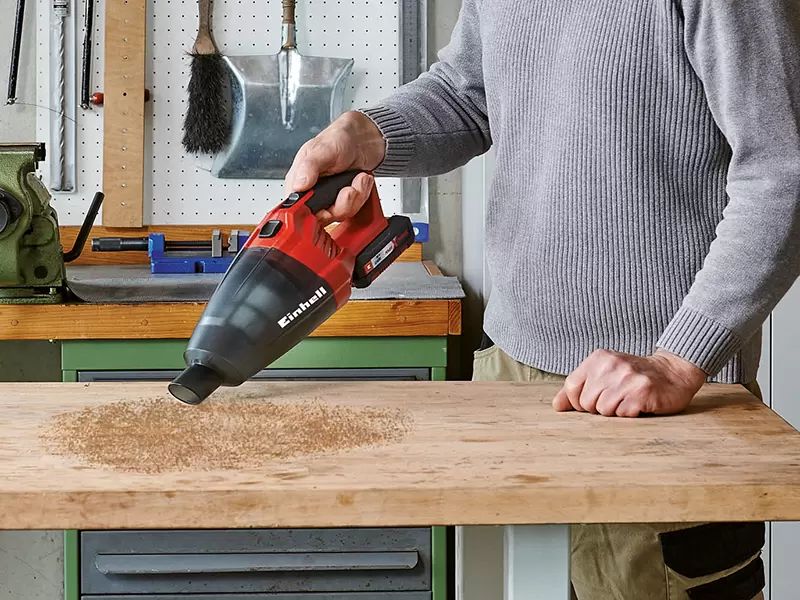 The Einhell TE-VC 18 Li Solo Cordless Vacuum Cleaner is supplied with a variety of attachments for fast, thorough cleaning of any surface, including a floor tool for hard floors and smooth surfaces, a crevice tool for hard-to-reach areas and an upholstery tool for cleaning upholstery and fabrics.