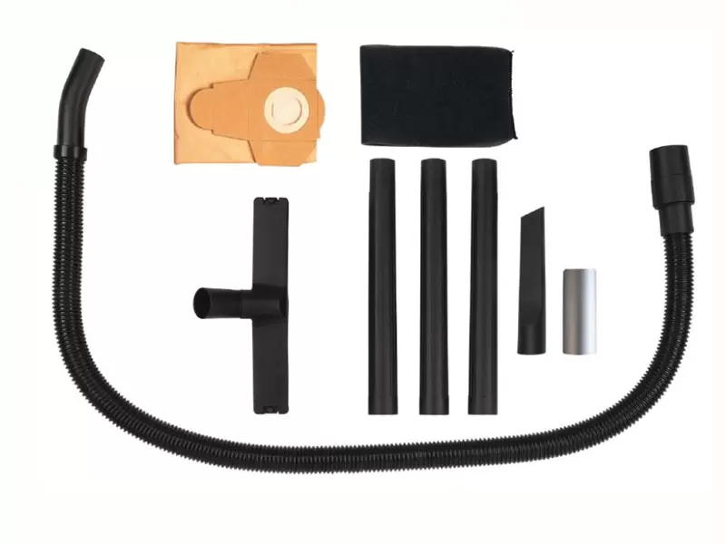 Supplied with: 1 x 36mm Suction Hose, 1 x Three-Piece Plastic Suction Pipe, 1 x Large Suction Nozzle with Combination Insert for Carpets & Smooth Flooring and 1 x Crevice Nozzle.