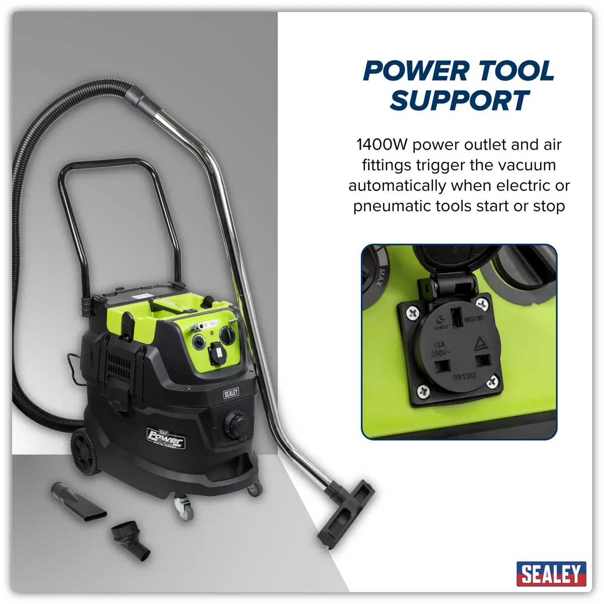 Home > Hardware / Consumables > Environmental & Janitorial > Sealey - PC400MA - M Class Dust-Free Industrial Wet & Dry Vacuum Cleaner 40L with Autostart for Air/Electric Power Tools 1600W/230V