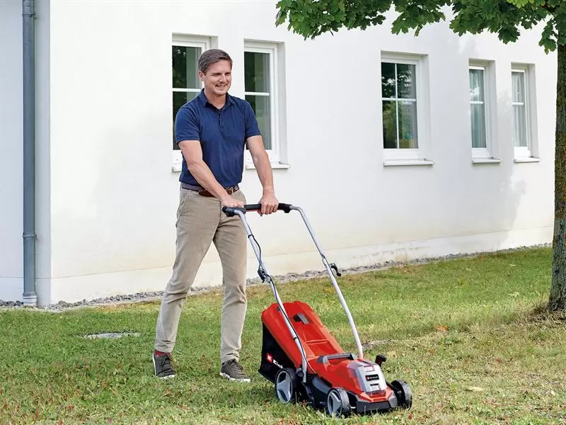 The Einhell GE-CM 18/33 Li Power X-Change Lawnmower is driven by an Einhell brushless motor, which has a longer life and running time than conventional carbon brush motors.