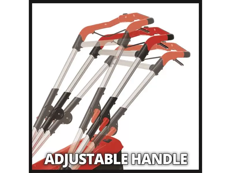 The ergonomically shaped handles ensure that you don't get tired while working, and the height-adjustable long handle can be individually adapted to each user. It is very sturdy and features a lightweight long handle made of aluminum. The integrated carry handle makes the unit easy to transport. The long handle can be folded down for space-saving storage of the lawn mower. The grass basket has a capacity of 45 liters and comes with a filling level indicator. The high wheeler has wide wheels that protect the lawn.
