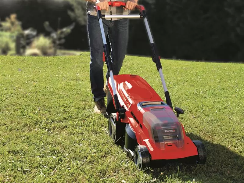 The Einhell GE-CM 36/37 Li-Solo Power X-Change Lawn Mower is recommended for lawns of up to 400m² in size.