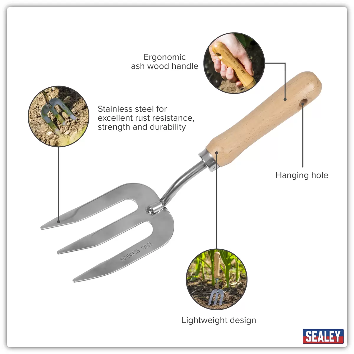 Sealey - GTWH007 - Premier Garden Hand Fork with Ash Handle & Stainless Steel Tines