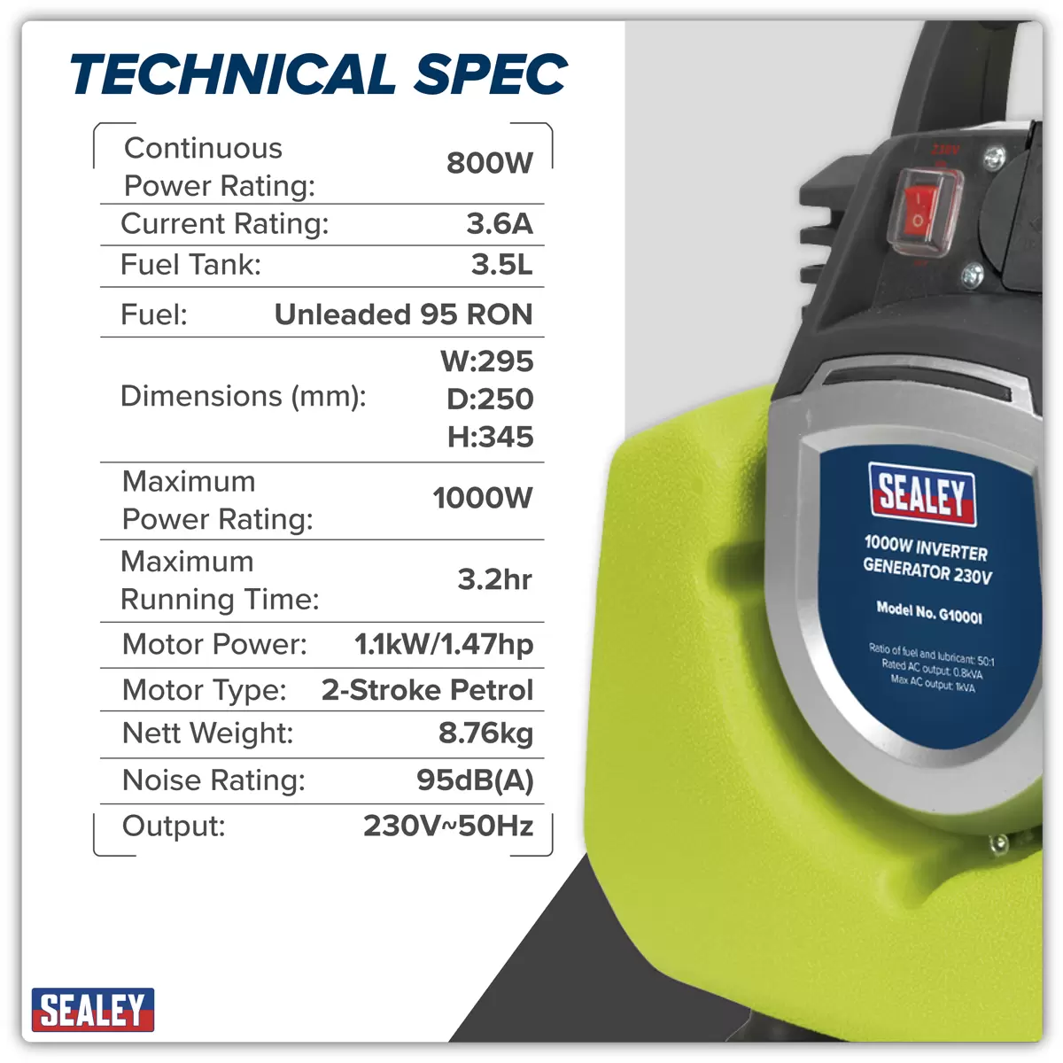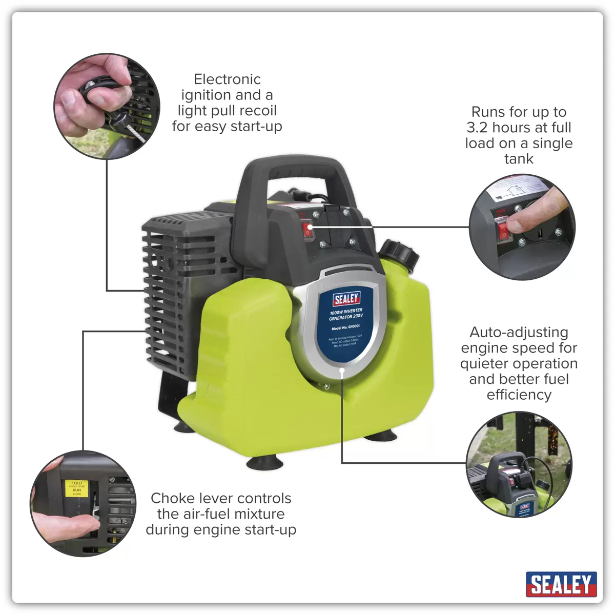 Sealey - G1000I - 1000W Inverter Generator 2-Stroke Engine 230V