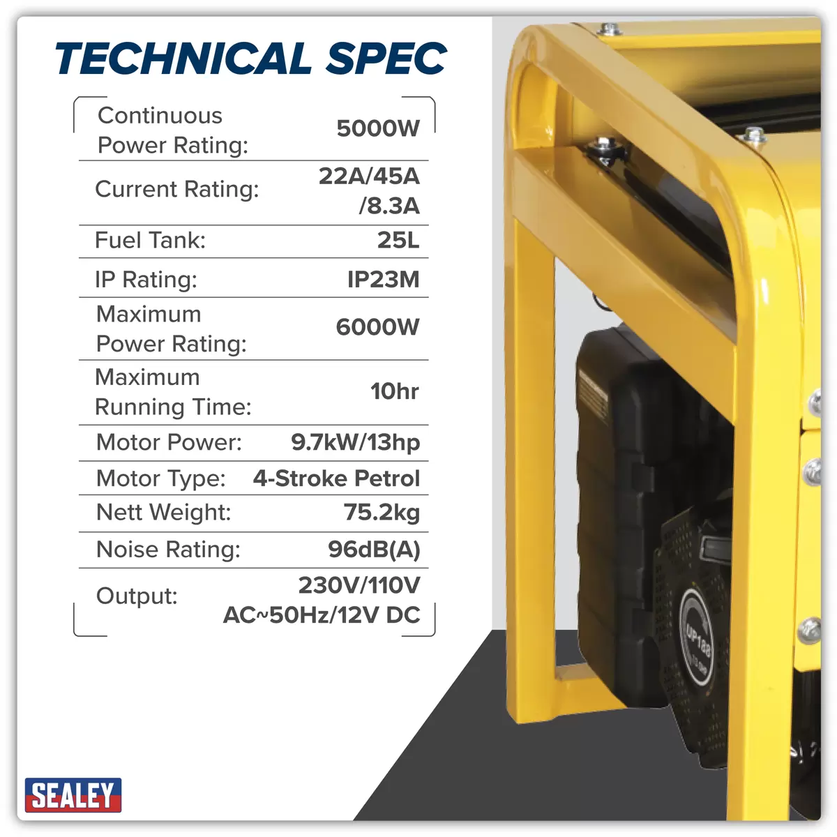 Sealey - GG7500 - 6000W Generator 13hp 4-Stroke Engine 110/230V