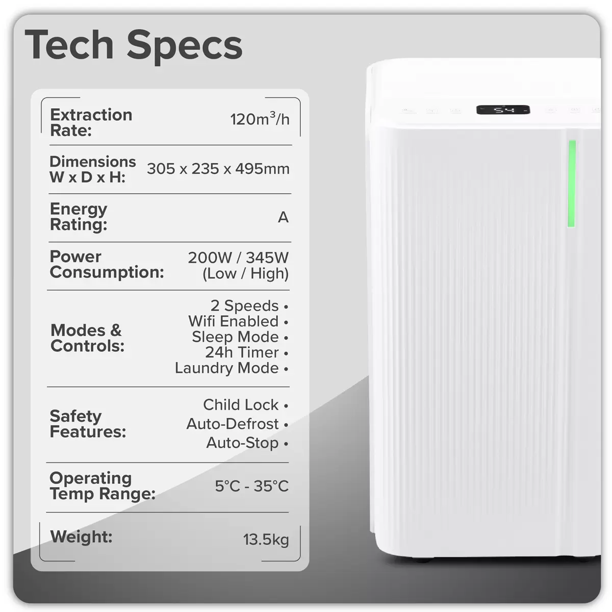 Baridi - DH148 - Baridi Dehumidifier with Digital Display & 24hr Timer 20L - White