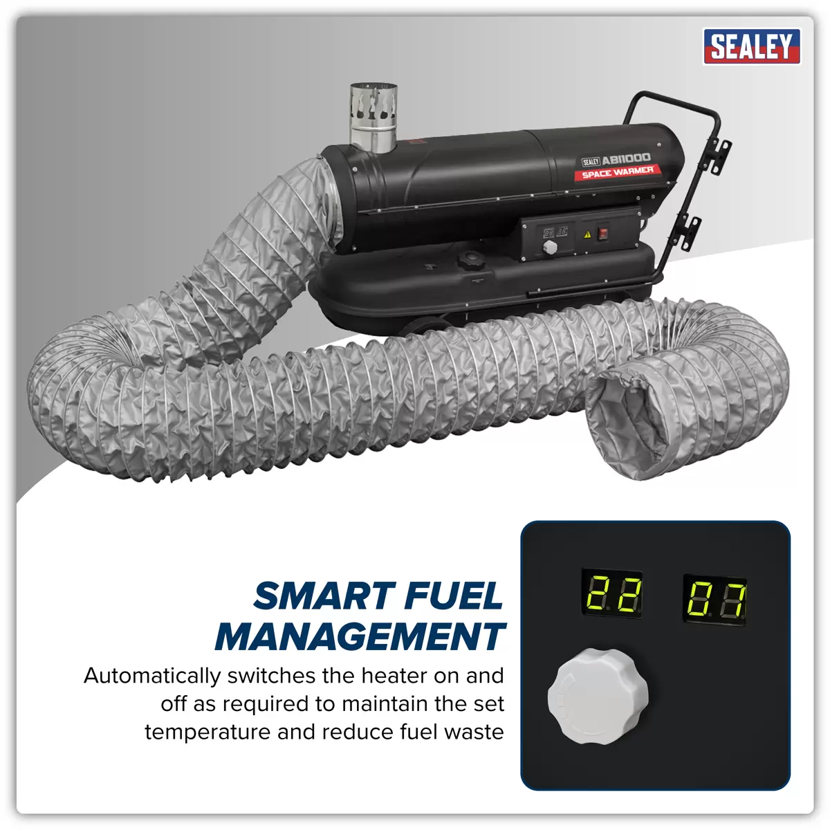 Home > Workshop Equipment > Heating, Ventilation, and Air Conditioning > Sealey - ABI1000COMBO - Space Warmer® Indirect Kerosene/Diesel Heater 102,000Btu/hr with 5M Ducting