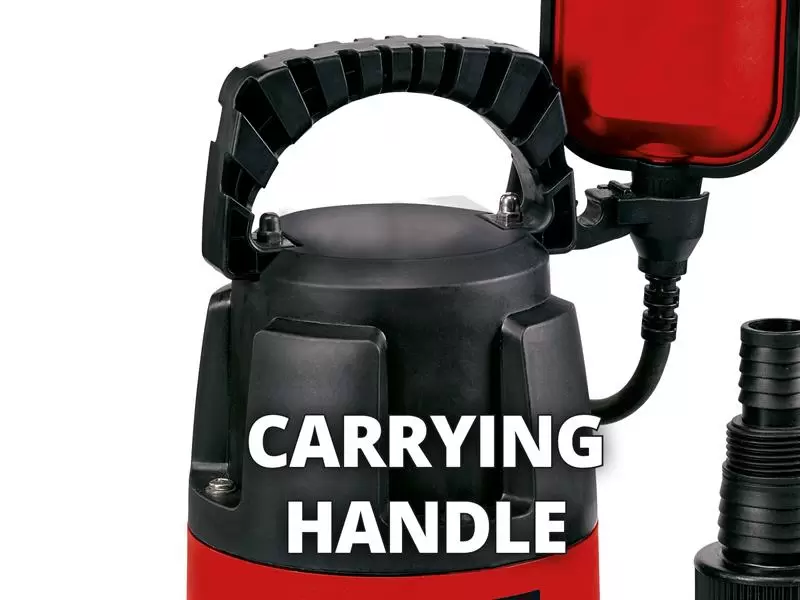 A practical cable winder and a sturdy integrated handle make it easy to move and store this submersible pump.
