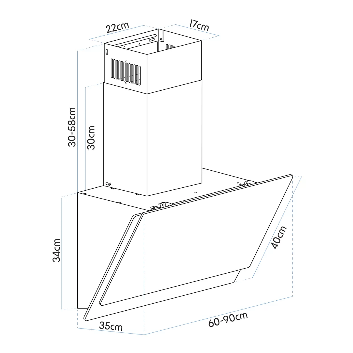 Home > Hardware / Consumables > Home & Leisure > Baridi - DH106 - Baridi Angled Chimney Cooker Hood with Carbon Filters & LED Lamp 90cm, Energy Class A - Black Glass