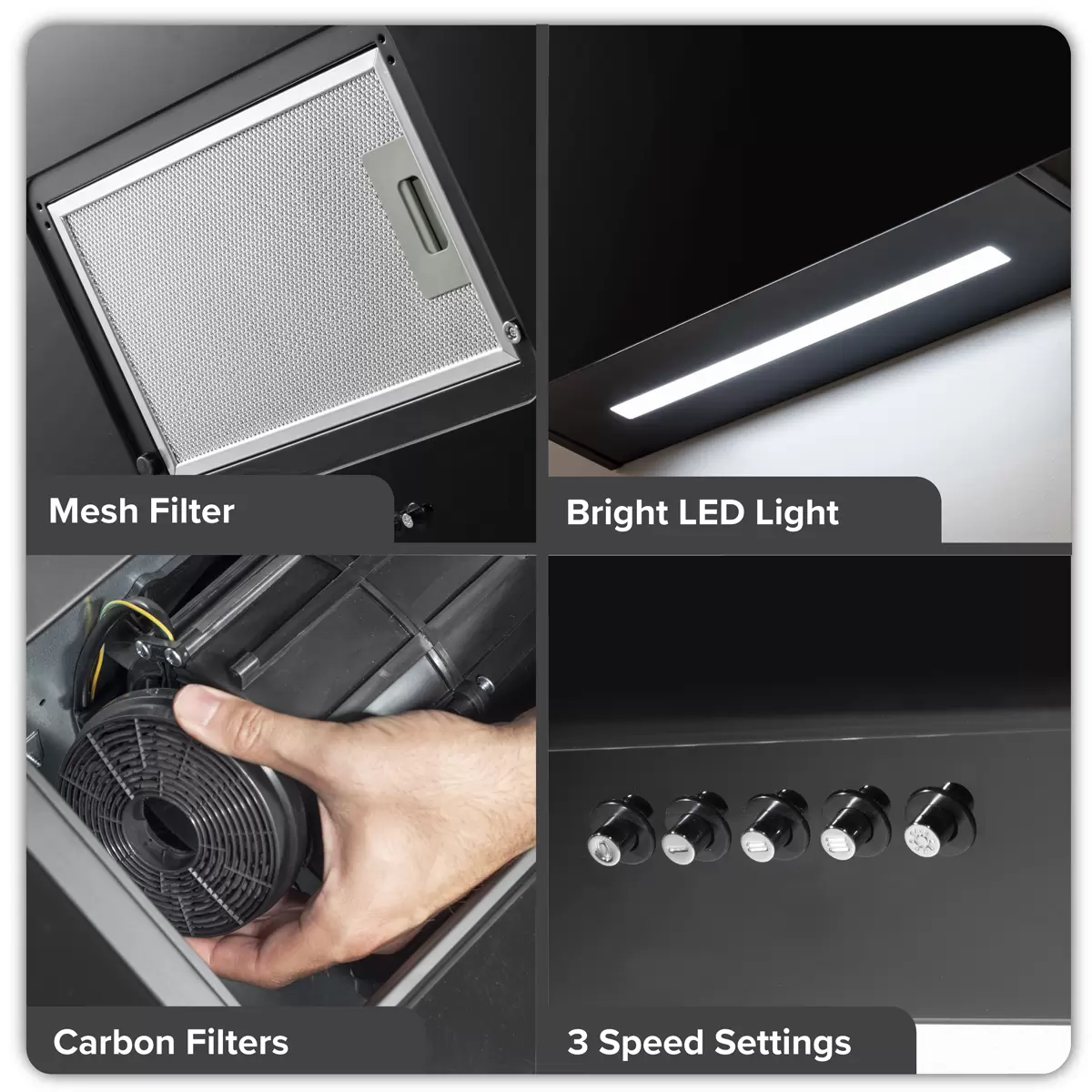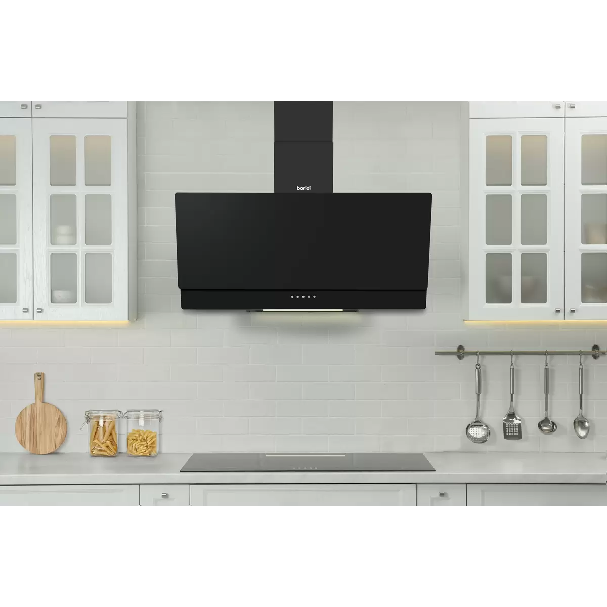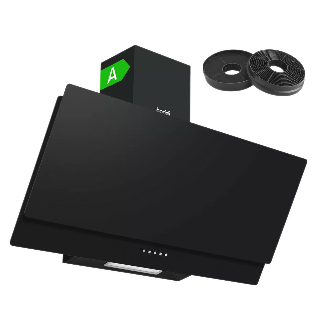 Baridi - DH106 - Baridi Angled Chimney Cooker Hood with Carbon Filters & LED Lamp 90cm, Energy Class A - Black Glass