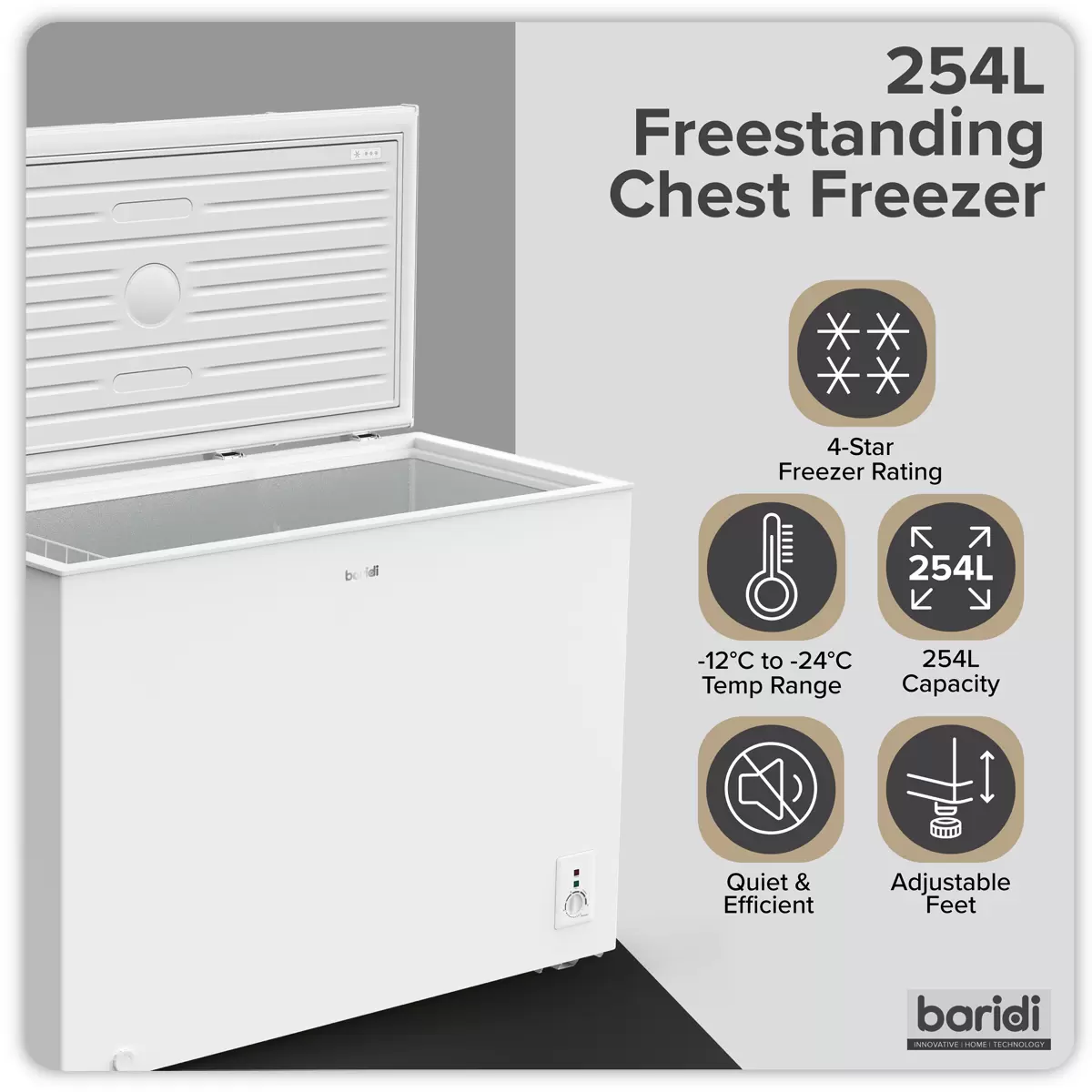Baridi - DH258 - Baridi Freestanding Chest Freezer 254L Capacity - White