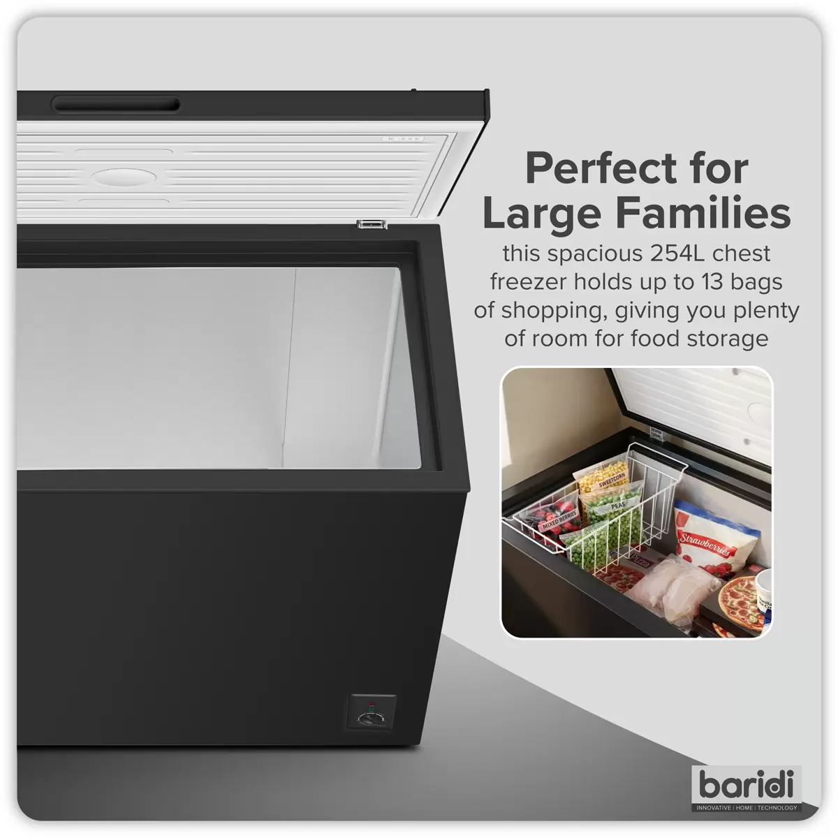 Baridi - DH259 - Baridi Freestanding Chest Freezer 254L Capacity - Black