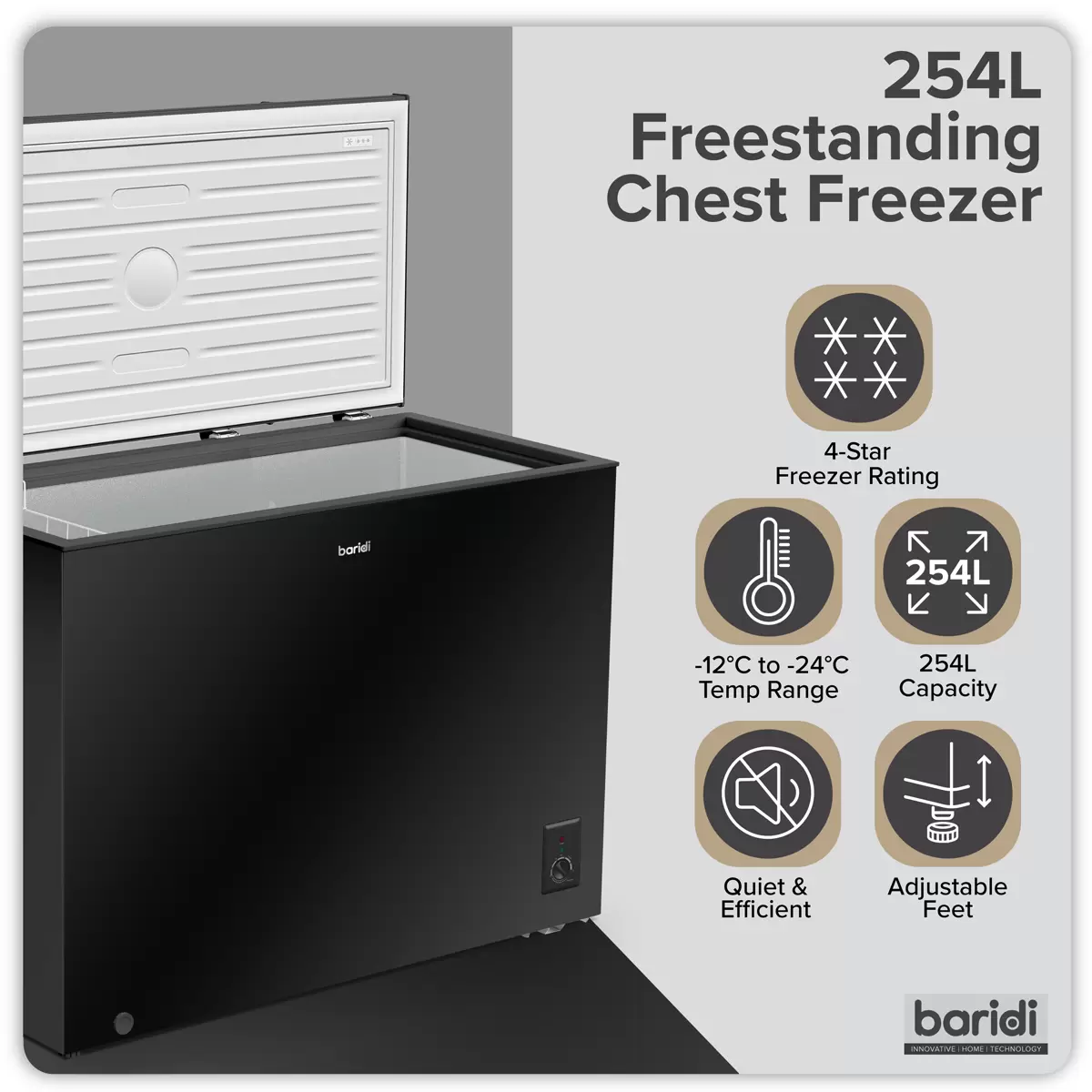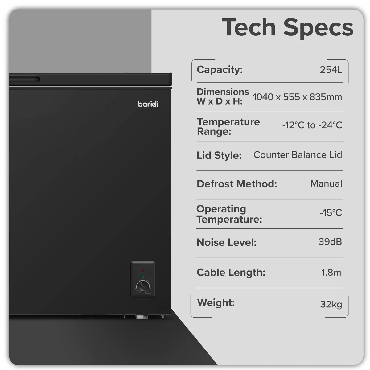 Home > Hardware / Consumables > Home & Leisure > Baridi - DH259 - Baridi Freestanding Chest Freezer 254L Capacity - Black