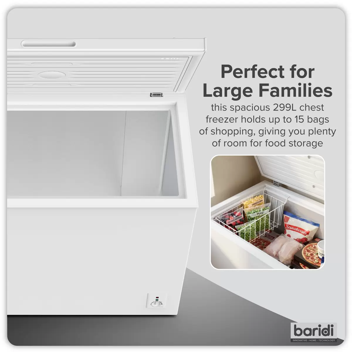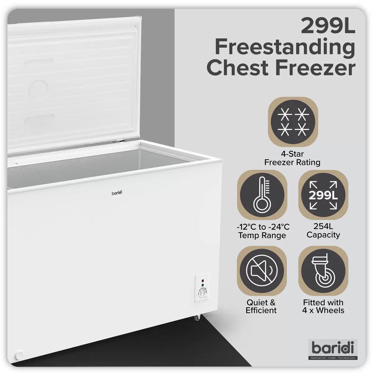 Baridi - DH260 - Baridi Freestanding Chest Freezer 299L Capacity - White