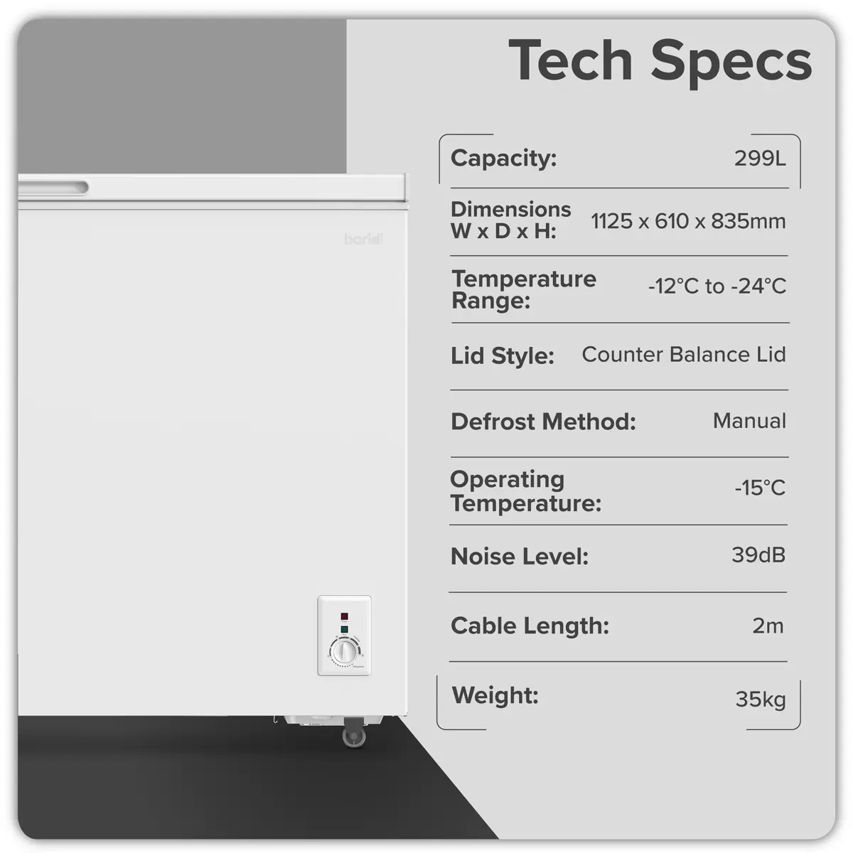 Home > Hardware / Consumables > Home & Leisure > Baridi - DH260 - Baridi Freestanding Chest Freezer 299L Capacity - White