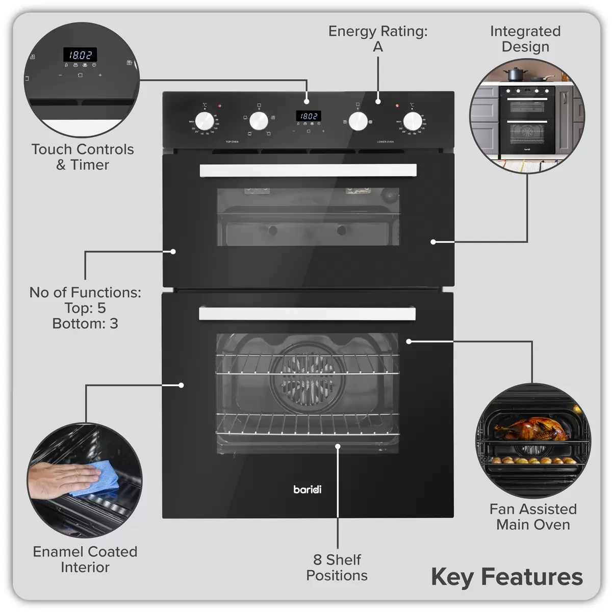 Baridi - DH278 - Baridi 72cm Built-Under Double Oven, 74L Capacity, Energy Rating A - Black