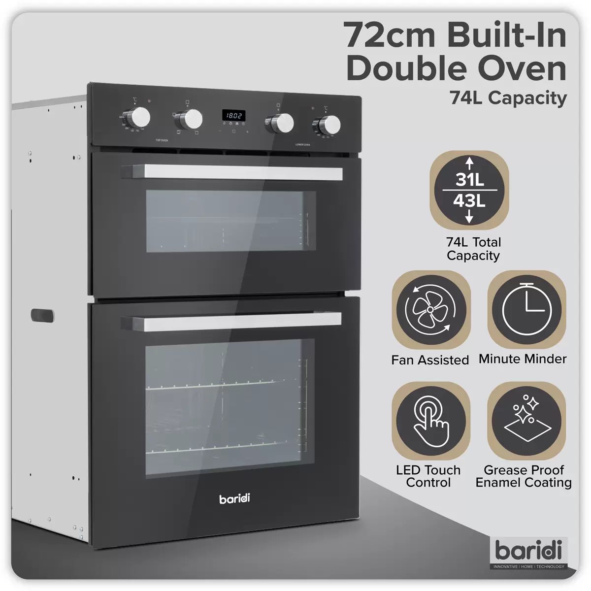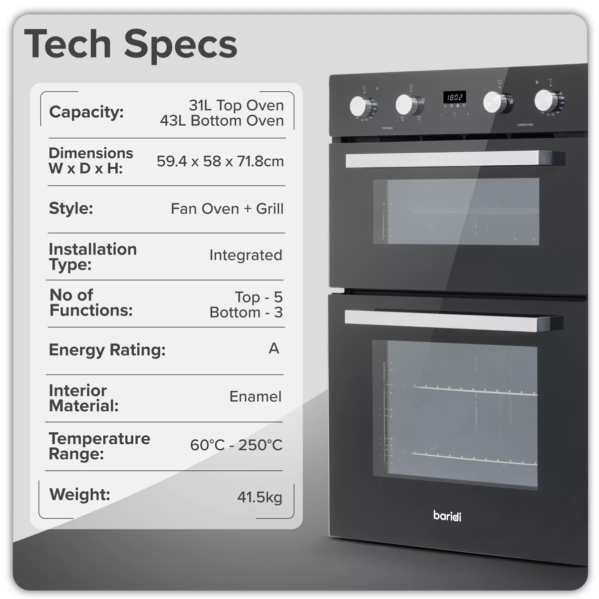 Home > Hardware / Consumables > Home & Leisure > Baridi - DH278 - Baridi 72cm Built-Under Double Oven, 74L Capacity, Energy Rating A - Black
