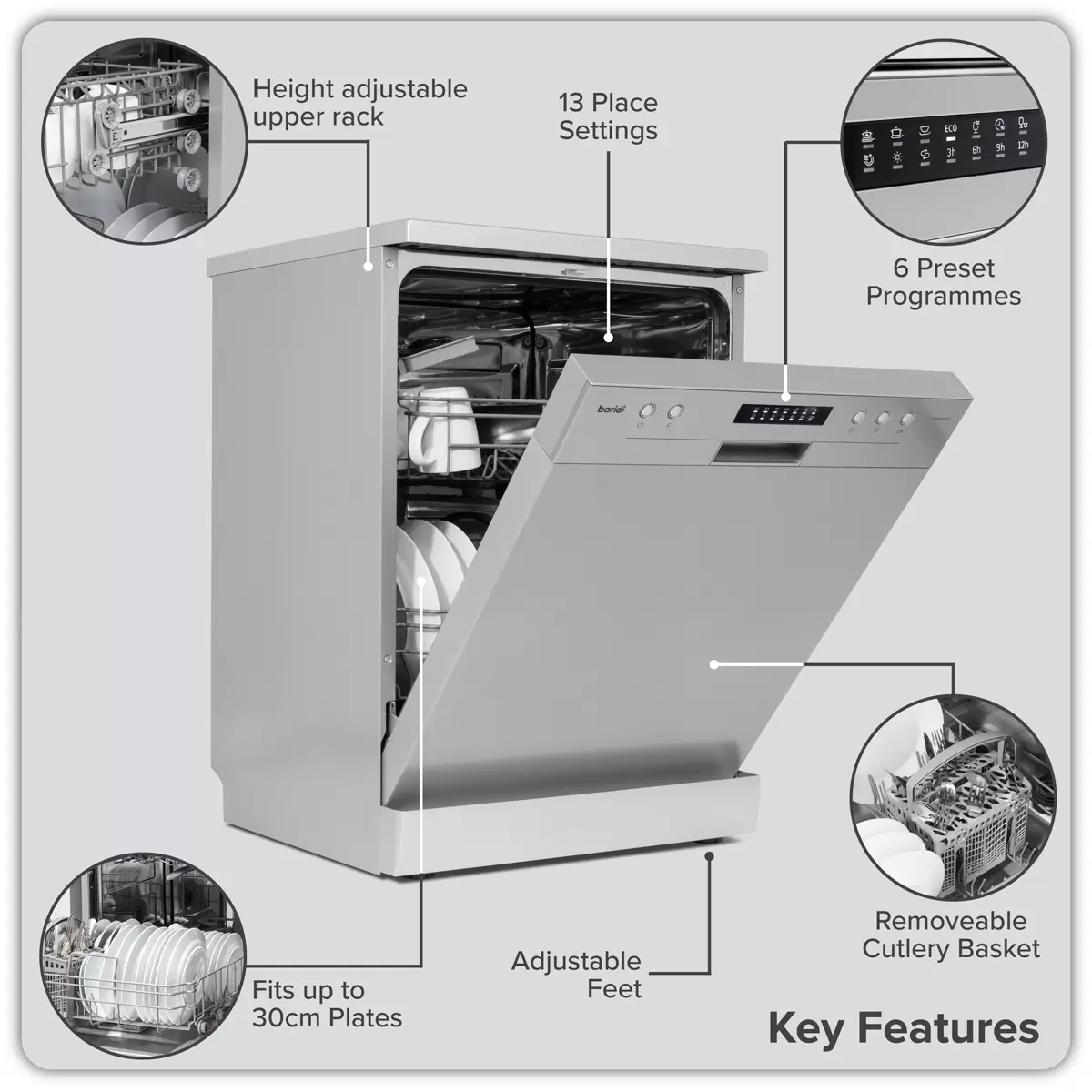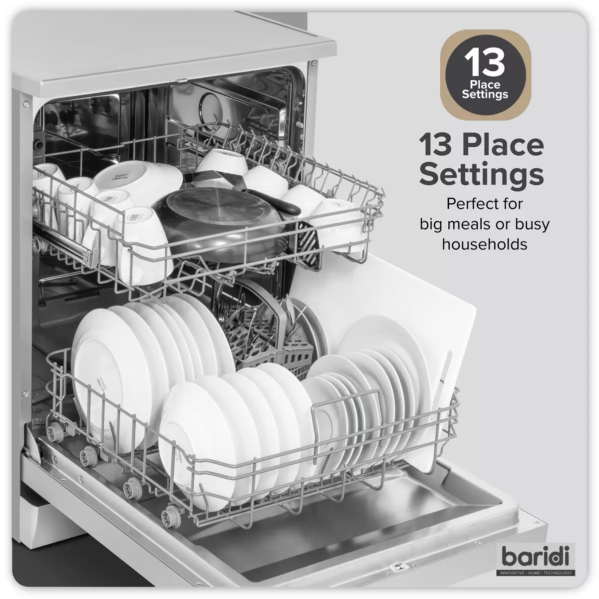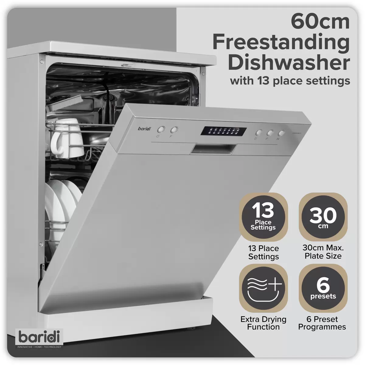 Baridi - DH280 - Baridi Regular Sized Freestanding Dishwasher 60cm Wide 13 Place Settings - Silver