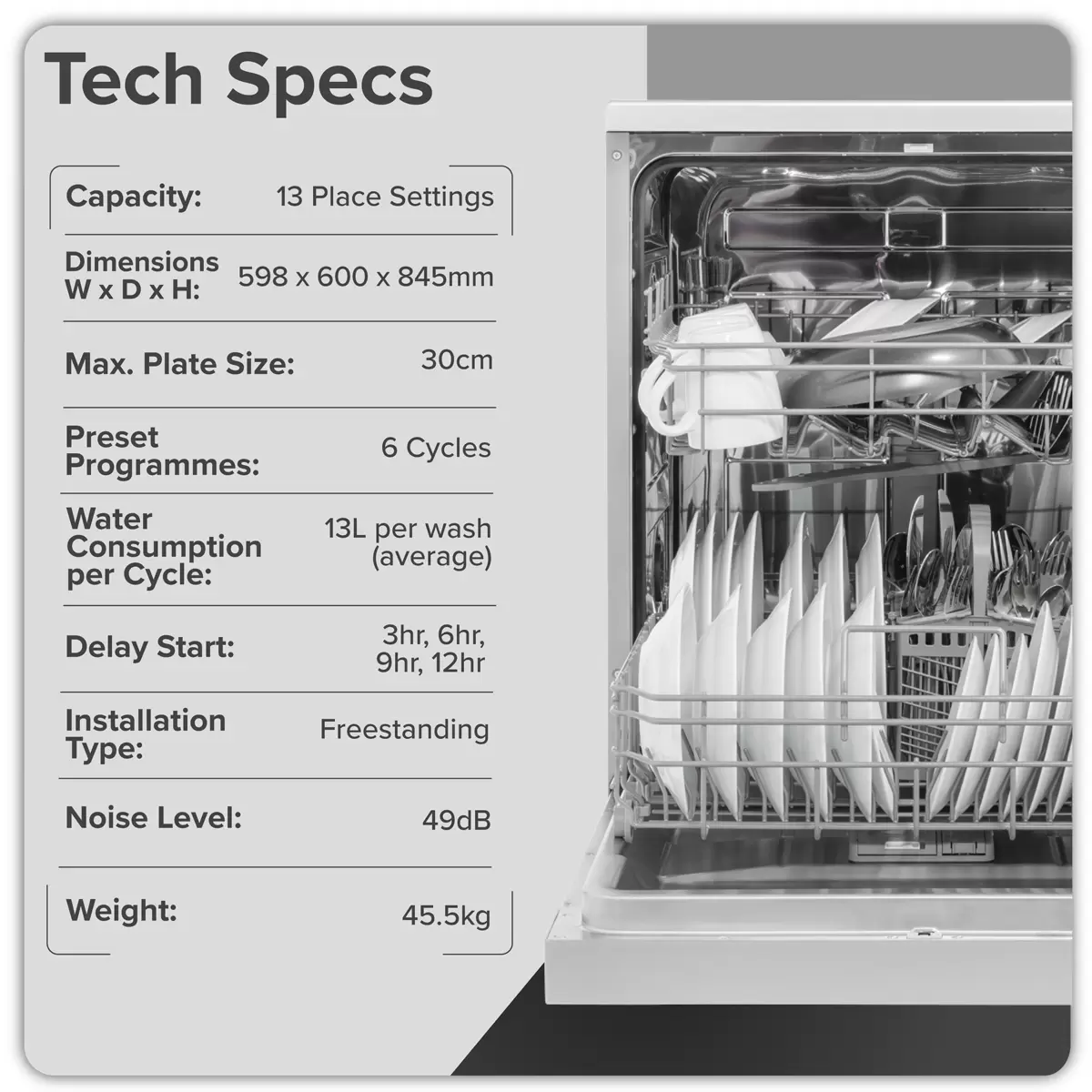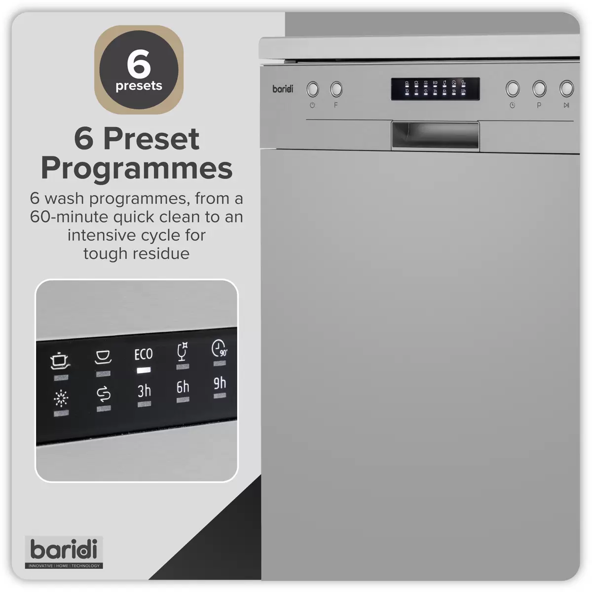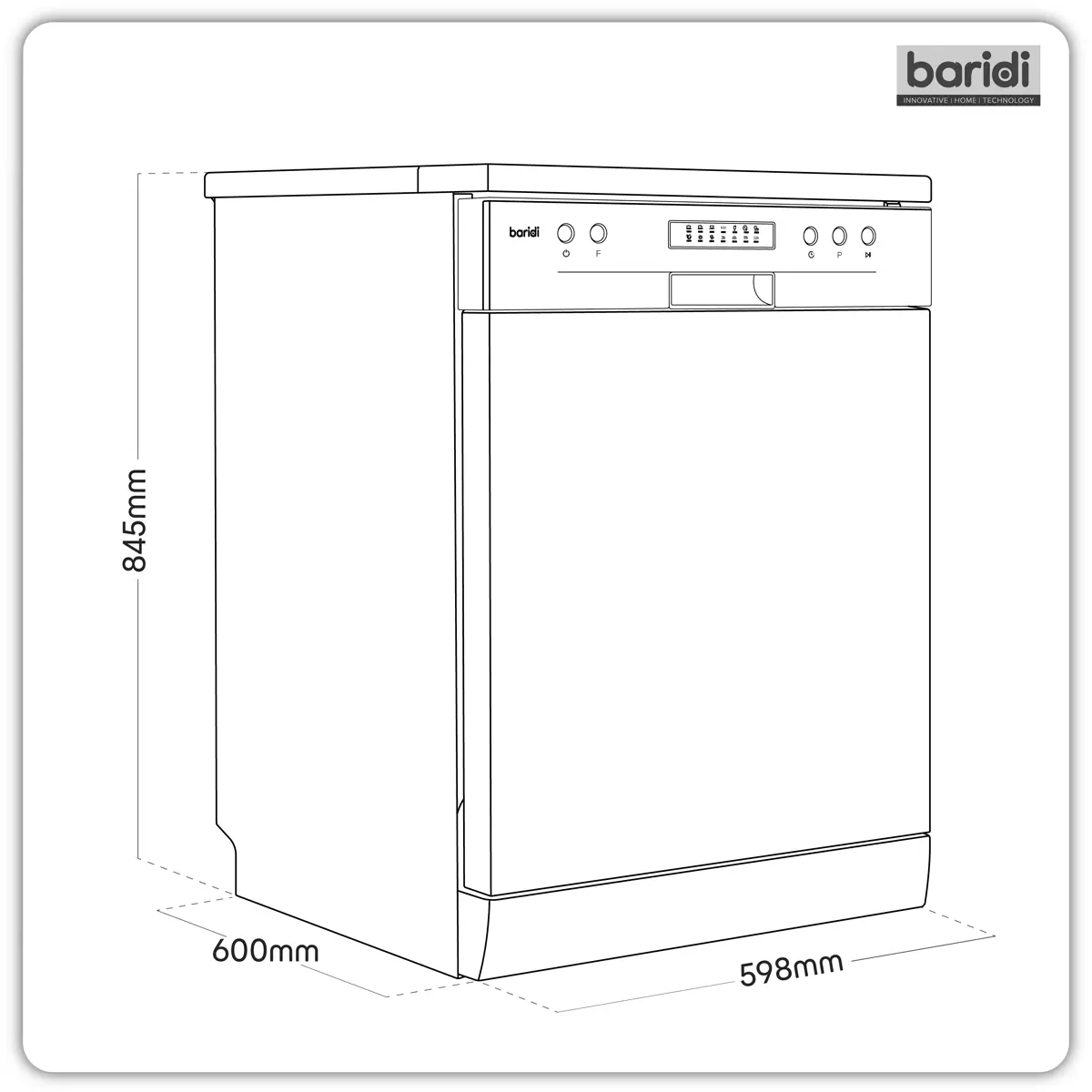 Baridi - DH280 - Baridi Regular Sized Freestanding Dishwasher 60cm Wide 13 Place Settings - Silver