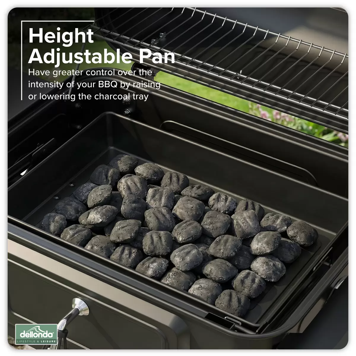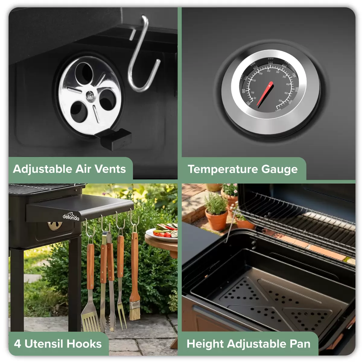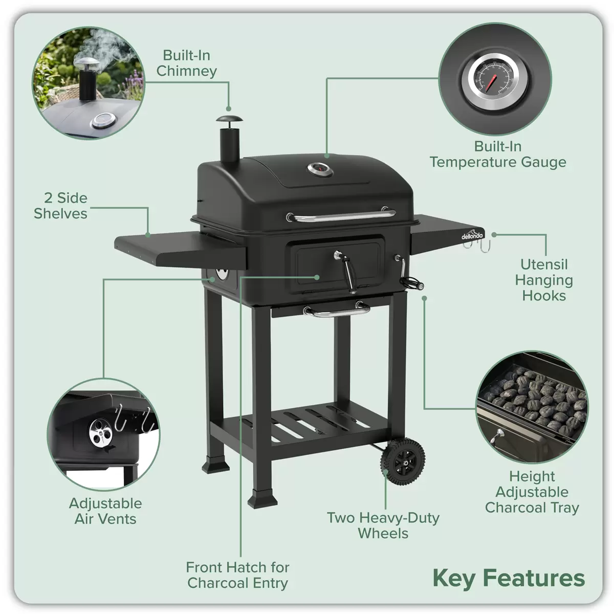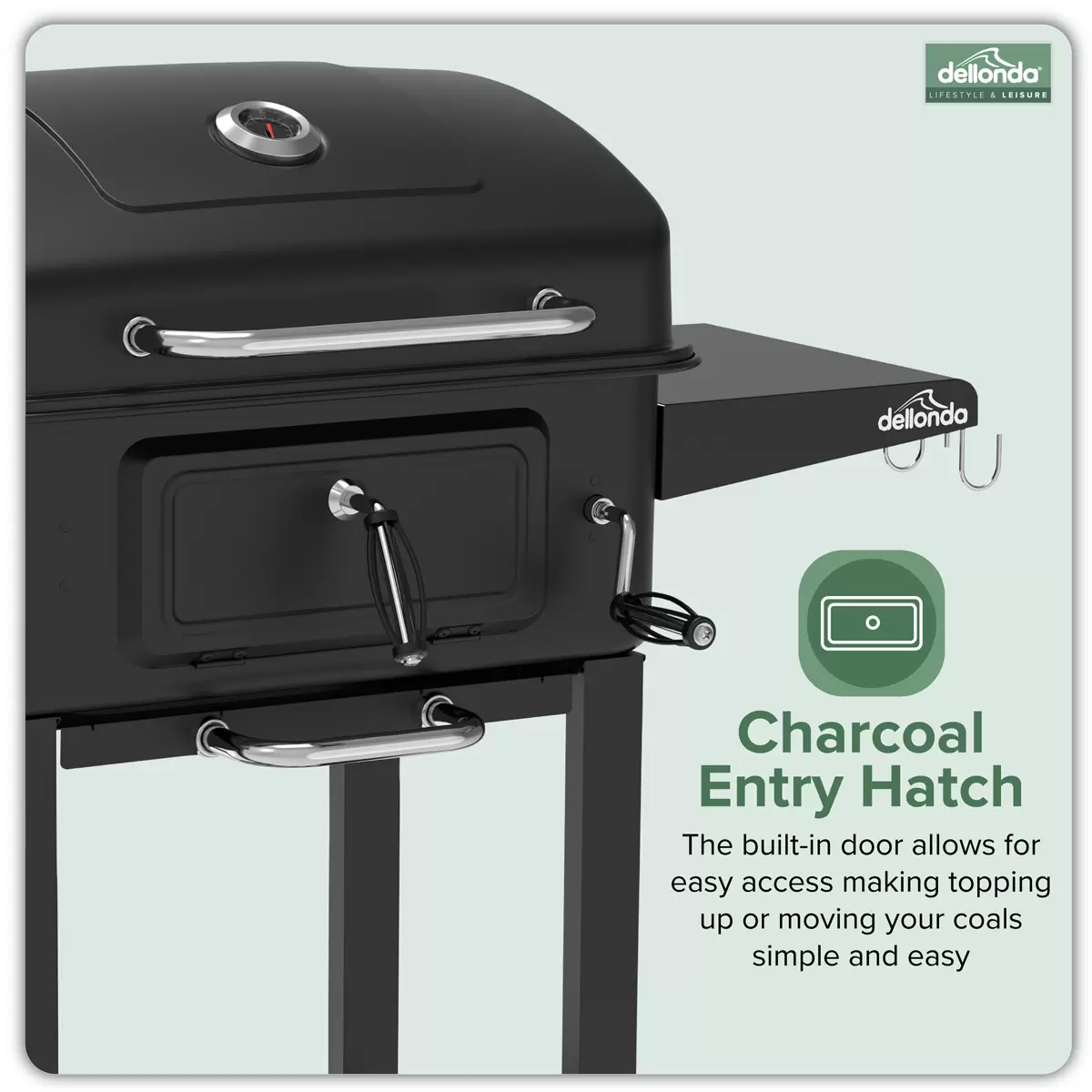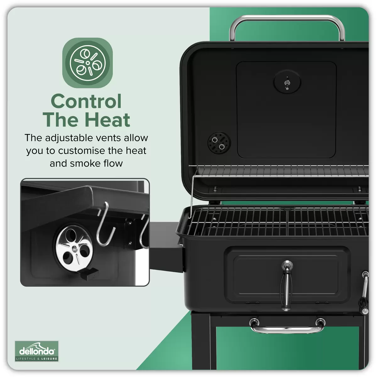 Dellonda - DG283 - Dellonda Charcoal Grill BBQ Smoker and Trolley with 2 Side Shelves - Black