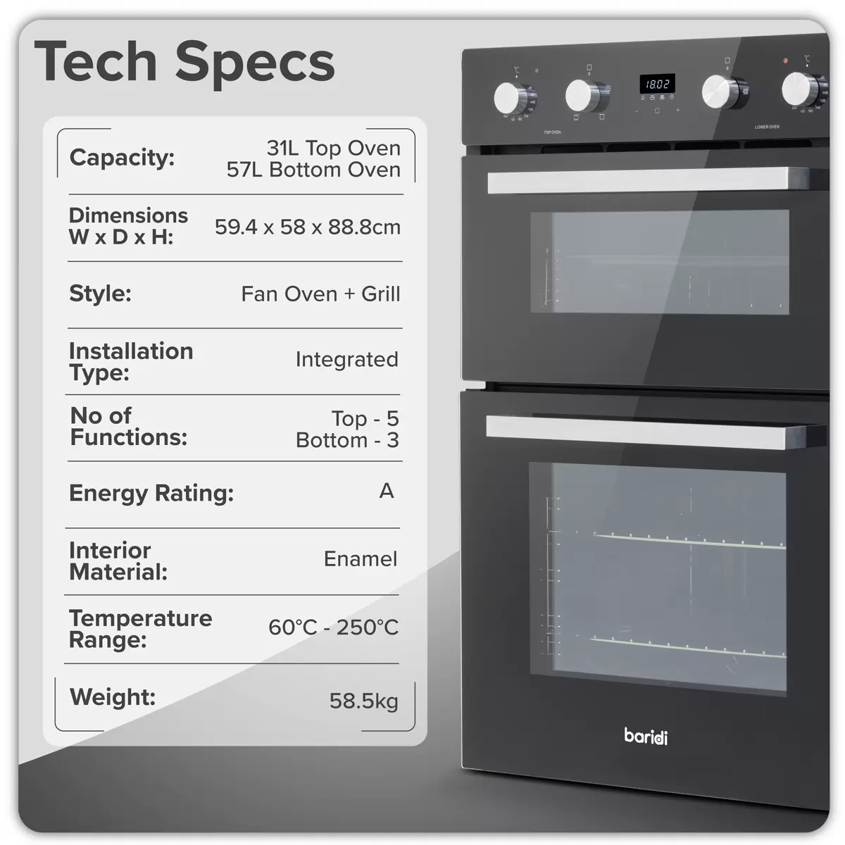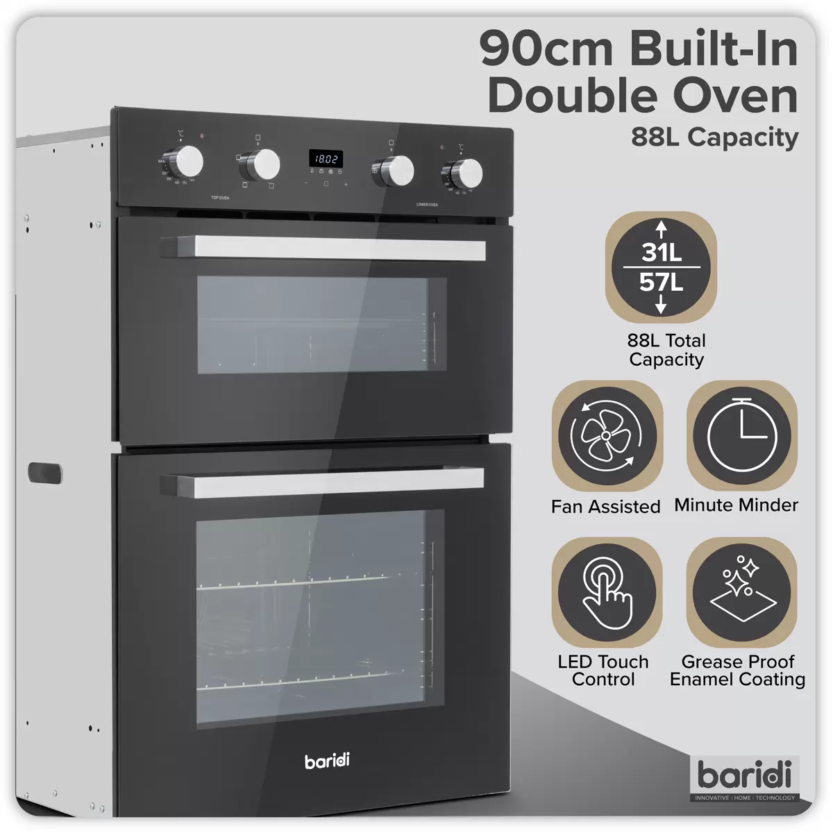 Dellonda - DH279 - 90cm Built-In Double Oven, 88L Capacity, Energy Rating A - Black