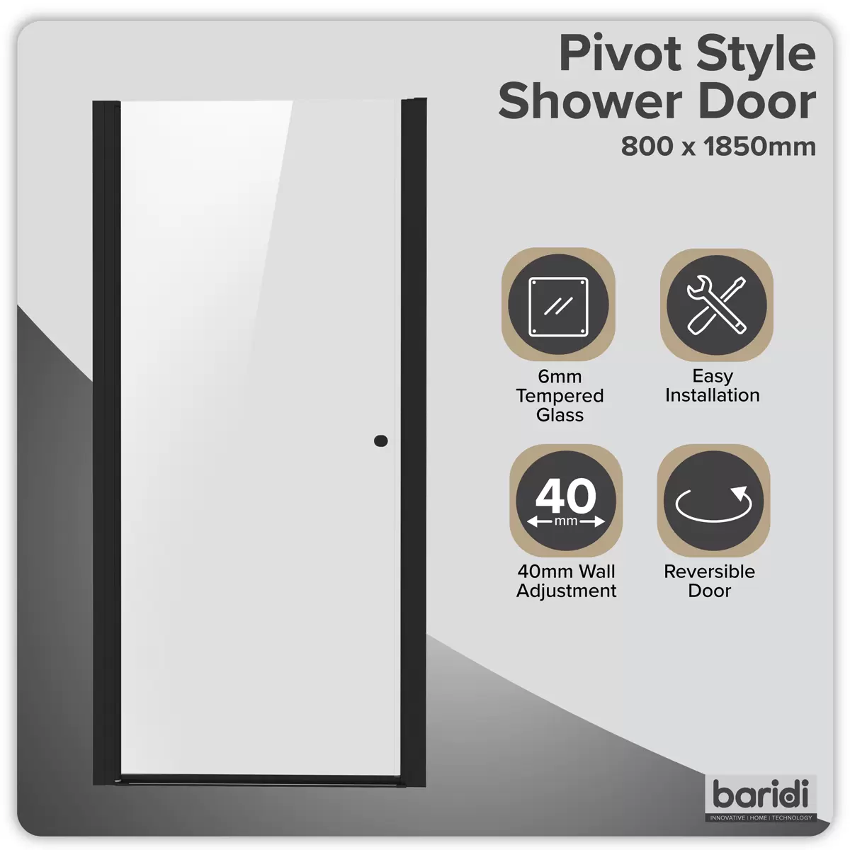 Dellonda - DH304 - Pivot Shower Door 800 x 1850mm, 6mm Tempered Glass, Reversible - Black