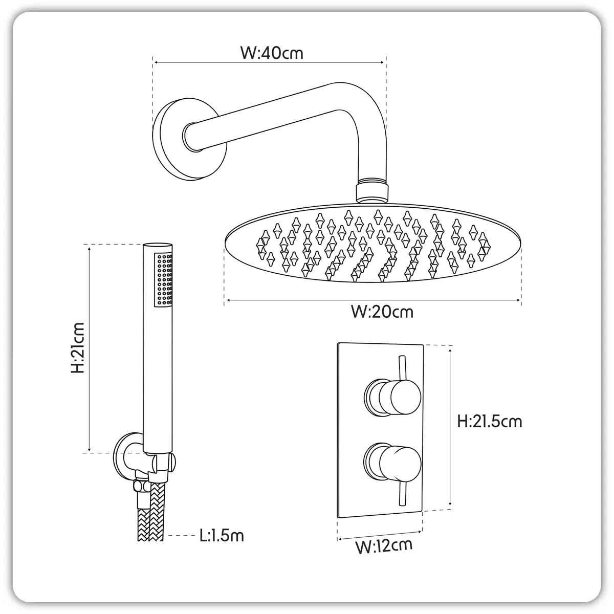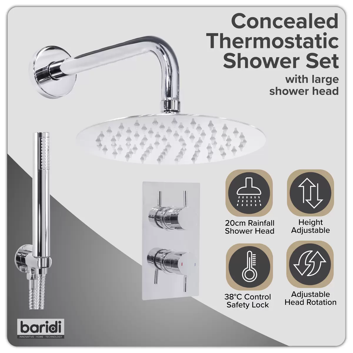Home > Hardware / Consumables > Home & Leisure > Dellonda - DH318 - Concealed Thermostatic Shower Set 20cm Round Head & Hand Shower - Chrome